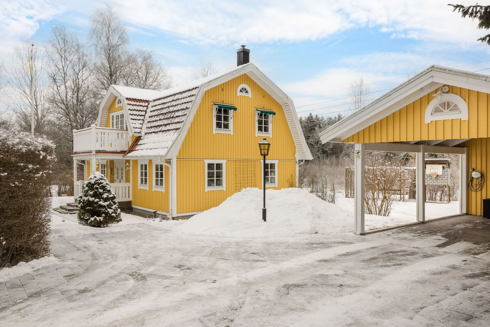 Mysig trädgård med stora plana gräsytor och tomten mäter hela 958 kvm. Carport med ett vidbyggt förråd och ytterligare ett fristående förråd på tomten. Laddbox för elbil installerat och fiber indraget.