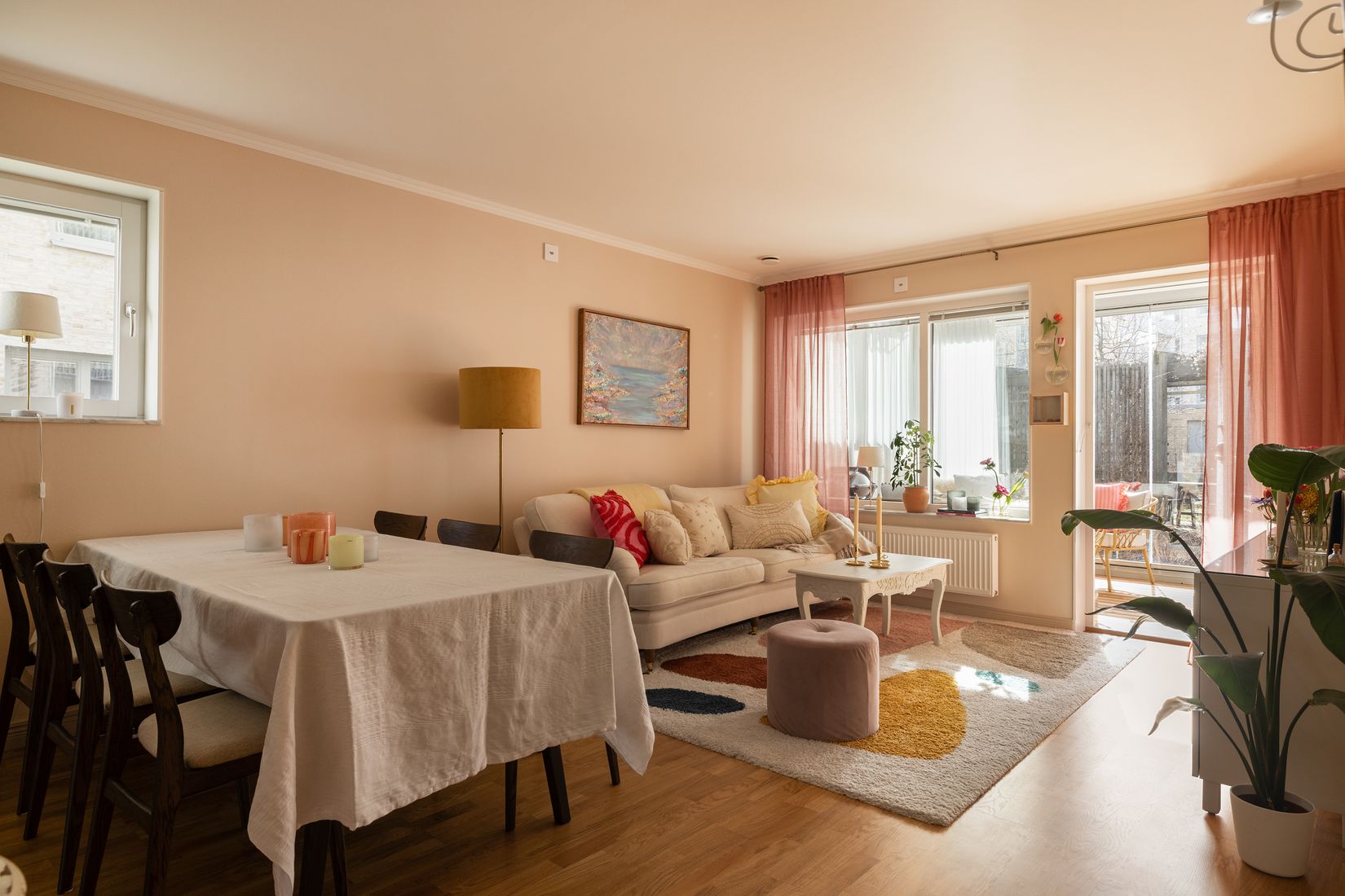 Att kunna kliva rakt ut på sin egen uteplats och njuta av grönskan – mitt i stan – är något alldeles extra. Här erbjuds en bostad som kombinerar lägenhetens bekvämlighet med känslan av ett eget hus.