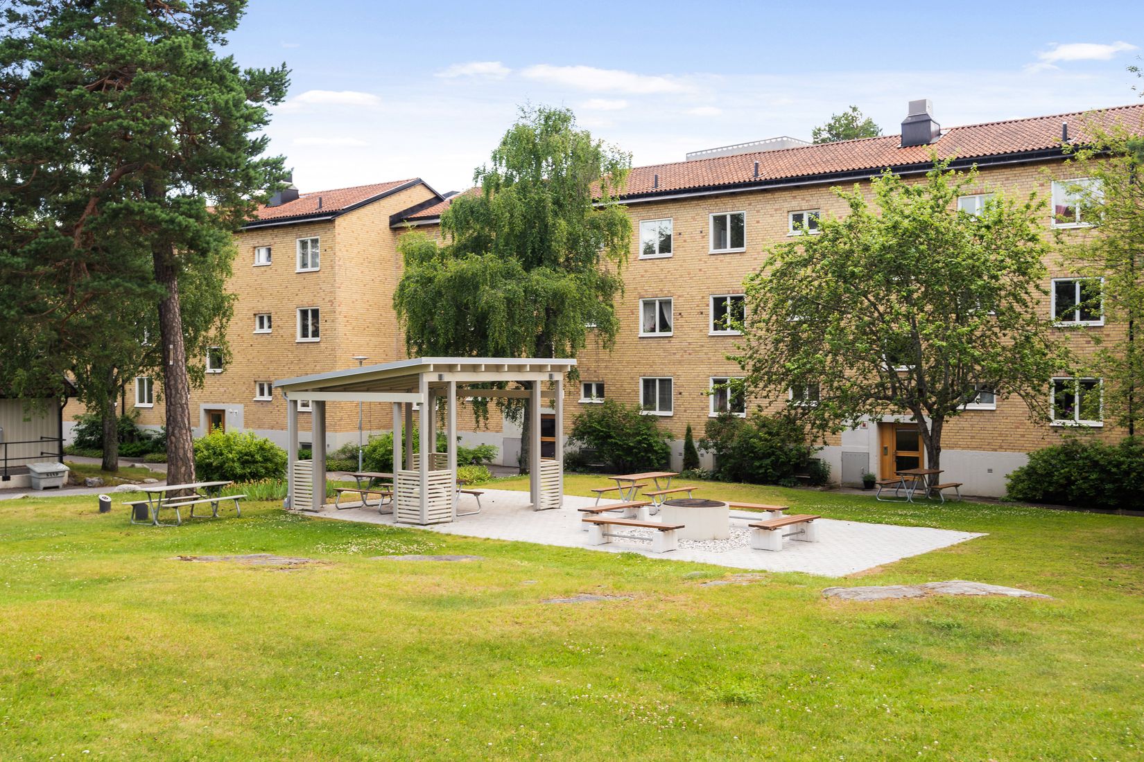 De boende har tillgång till två stora, parkliknande innergårdar, en grön oas med mysiga sittplatser, grillmöjligheter och utrymme för avkoppling och umgänge.