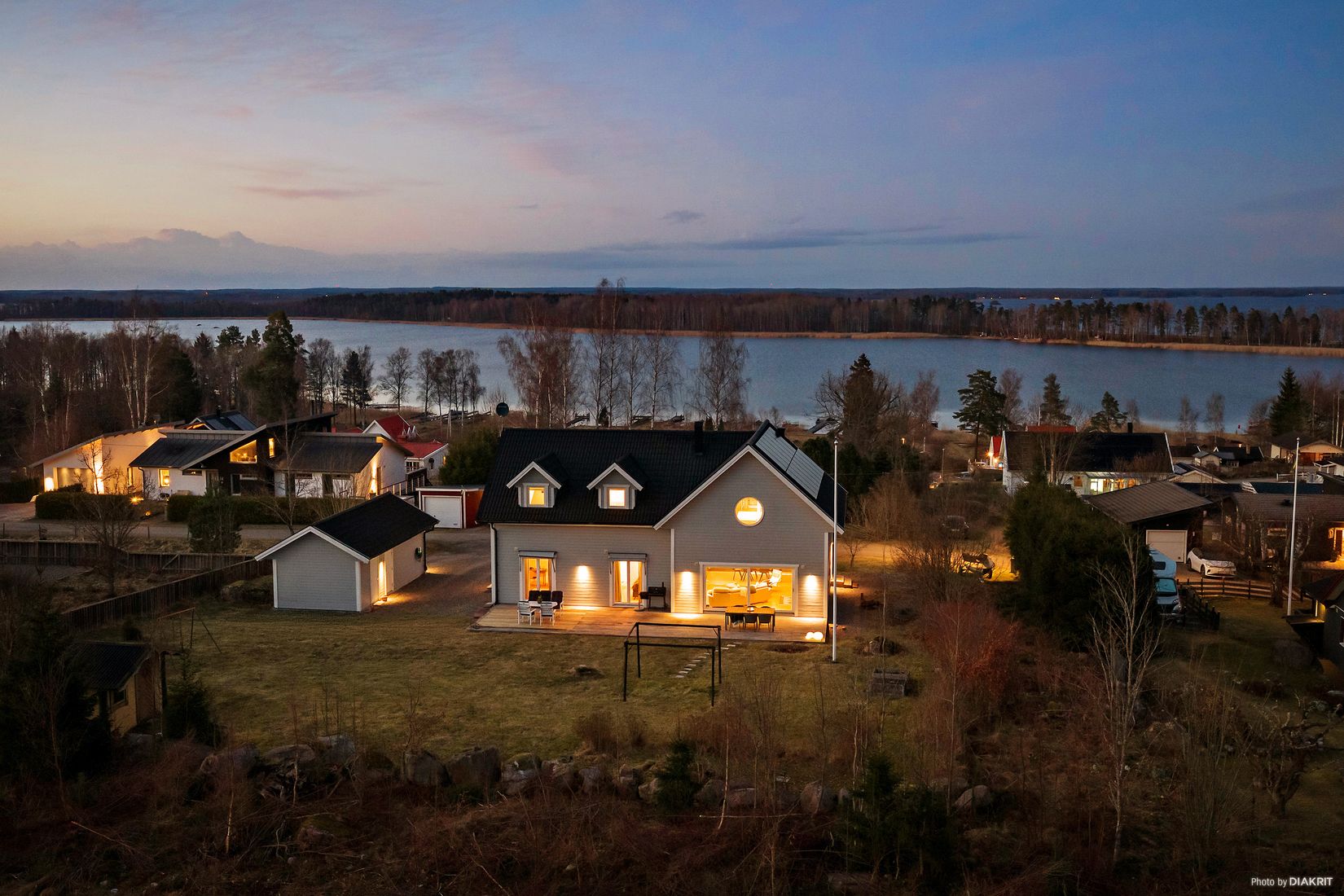 Välkommen till en arkitektritad och unik 1,5-plansvilla om 150 kvm, uppförd 2016, med ett fint läge vid Hjälmarbaden och utsikt över Hjälmaren. Här möts modern arkitektur och genomtänkta materialval i ett hem utöver det vanliga.