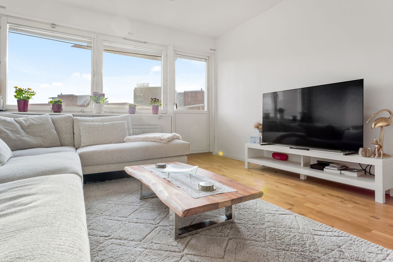 Här erbjuds ett trivsamt och välplanerat boende med härligt ljusinsläpp från två väderstreck. Bostaden har ett rymligt badrum och ett generöst vardagsrum som är enkelt att möblera. Köket är stort och funktionellt med goda arbetsytor, gott om förvaring och plats för ett större matbord.