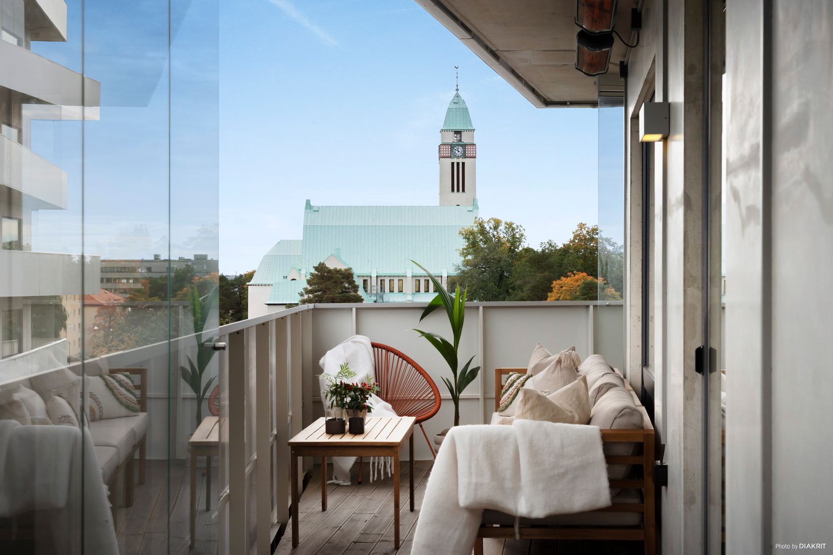 Sovrummet är rofyllt och välplanerat med goda förvaringsmöjligheter, medan badrummet präglas av moderna och exklusiva val som ger en hotellinspirerad känsla. Från vardagsrummet och sovrum nås den stora balkongen – en riktig pärla som erbjuder en vidsträckt utsikt och gott om plats för både loungemöbler och middagar i solen. Här kan du njuta av lugnet högt över omgivningarna, oavsett tid på dagen.