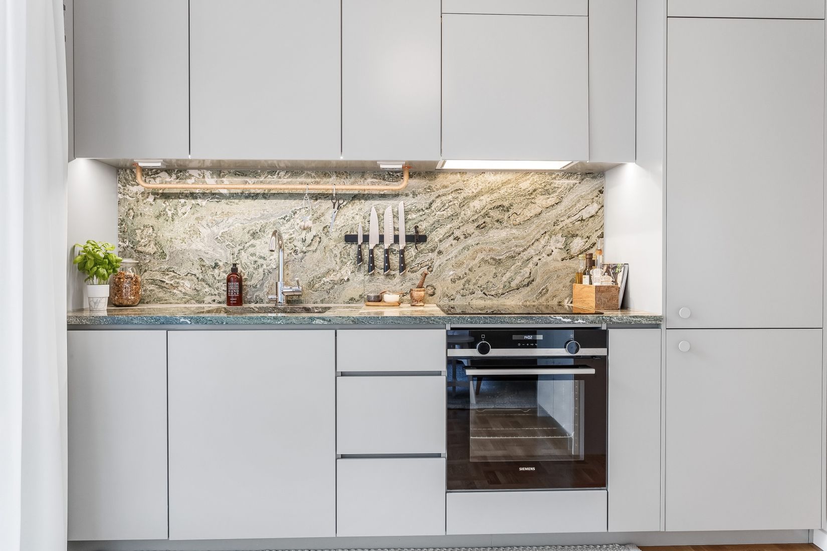- Påkostade materialval med bl.a. grön carrara marmor