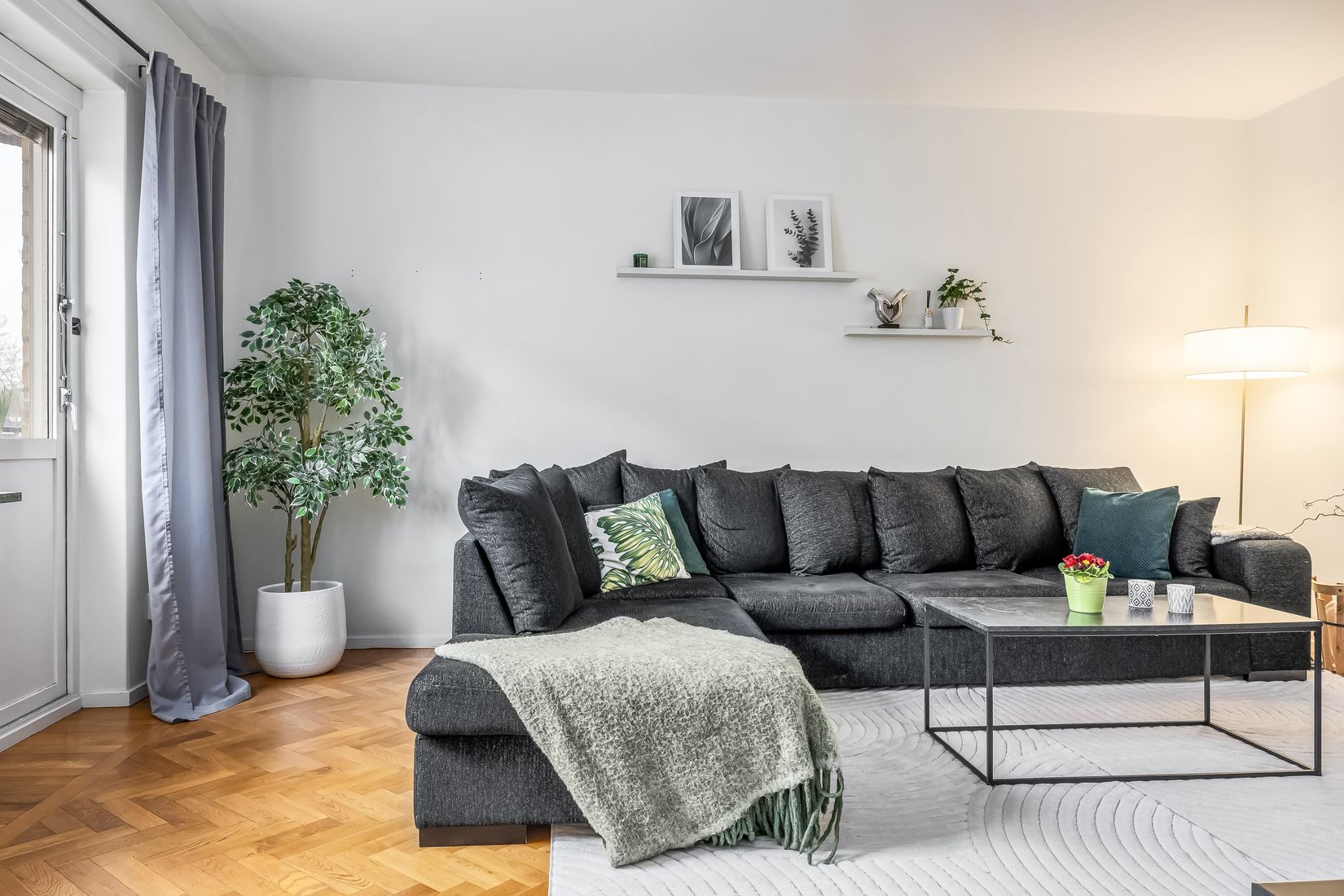 Endast en trappa upp möts du av denna trivsamma tvåa där varje kvadratmeter är väl utnyttjad. Bostaden erbjuder ett rymligt och ljust vardagsrum med vacker, bevarad fiskbensparkett som ger en tidlös och elegant känsla.