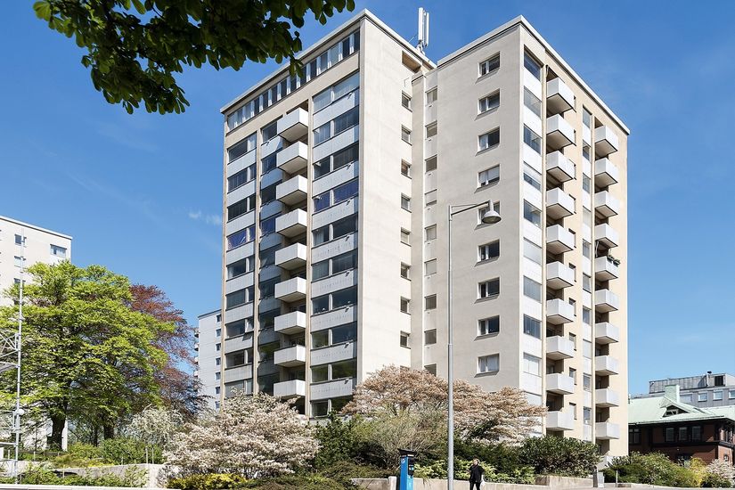 Föreningsgatan stiger brant mellan grönskande träd. På gatans krön reser sig de tidstypiska punkthusen från tidigt 60-tal högt över Vasastaden. Här uppe i de höga och fridfulla kvarteren känns staden nästan långt borta, samtidigt som storstadsbruset på Vasagatan pågår för fullt, bara ett par hundra meter ner.