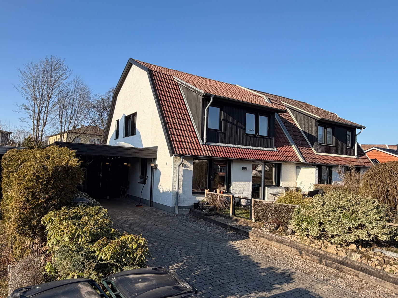 På tomten finns en stor carport som delvis byggts om till en trivsam loungeavdelning – en perfekt plats för avkoppling och sociala stunder. Här finns även ett härligt spabad som förhöjer livskvaliteten året om.