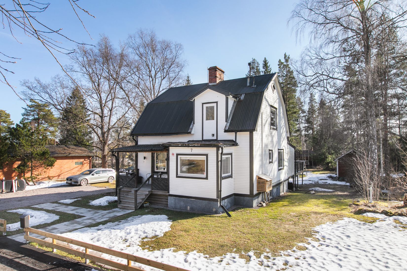 Trädgården ramas in av skog i bakgrunden och erbjuder en lugn och privat miljö att njuta av. Läget är centralt med närhet till kommunikationer och allt som behövs för ett bekvämt liv.