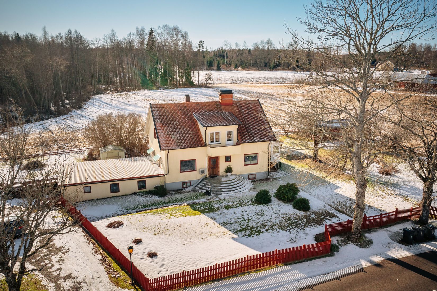 Utomhus väntar en generös trädgård med gott om plats för både lek, odling och avkoppling. Här finns en inglasad altan som förlänger utesäsongen, en mysig pergola för sommarkvällar samt en praktisk snickarbod.