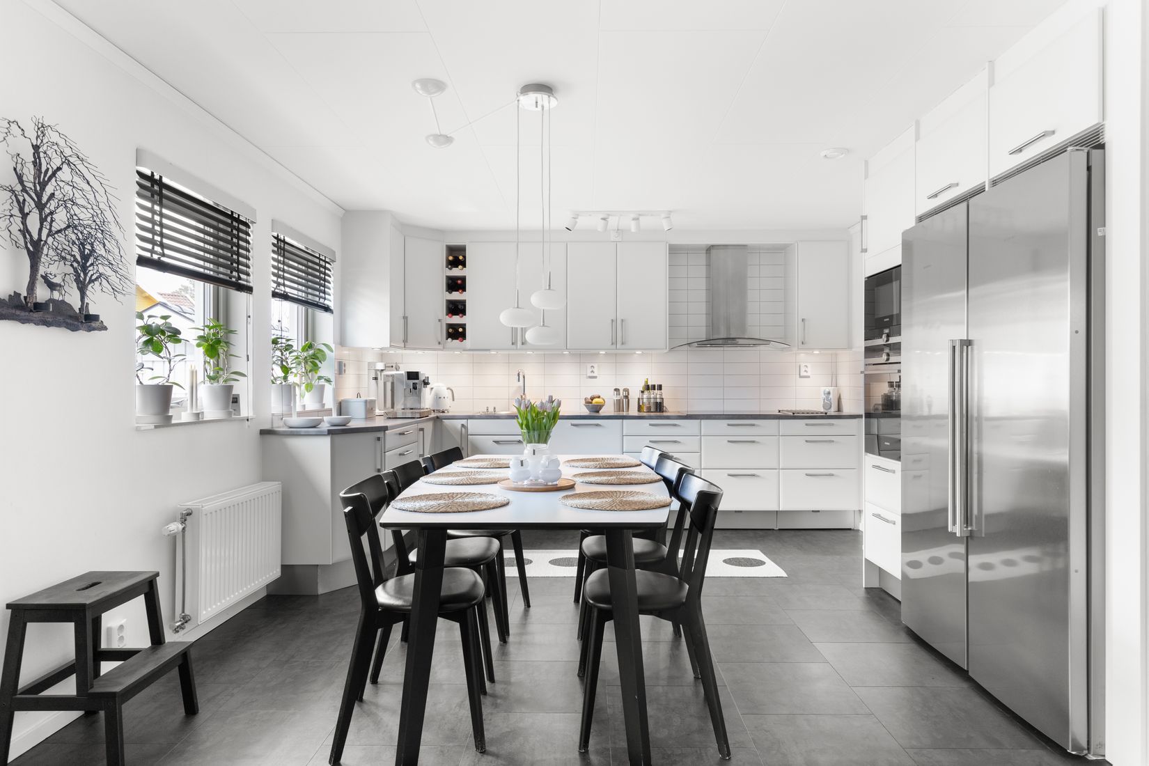 Entréplanet erbjuder en öppen planlösning mellan det rymliga vardagsrummet och köket och blir hemmets naturliga samlingsplats. Köket från Marbodal renoverades 2015 och är smakfullt inrett med vita luckor och svart laminatbänkskiva samt erbjuder generösa arbetsytor och god förvaring. Från vardagsrummet nås det inglasade uterummet med skjutbara glaspartier – en härlig plats som förlänger utesäsongen. Härifrån kliver du vidare ut till altandäcket i västerläge där du kan njuta av eftermiddags- och kvällssolen.