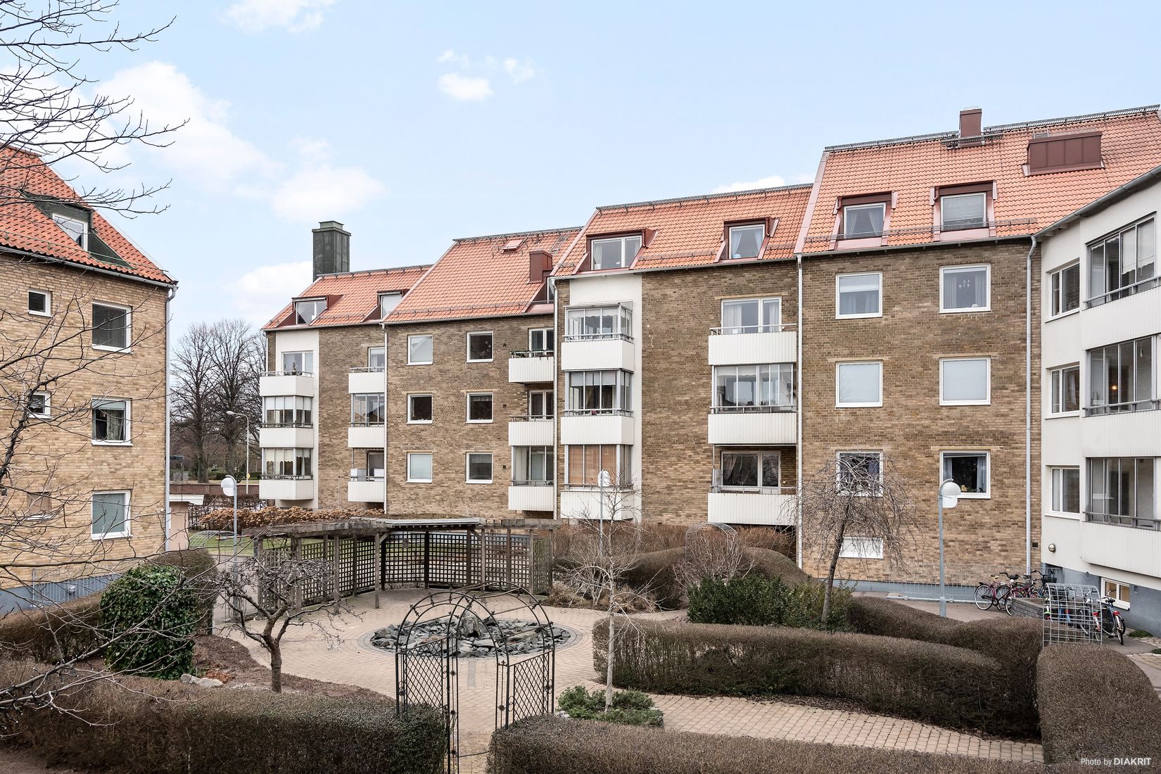 Balkongen, som vetter mot gården, blir ett extra rum på sommaren och höjer livskvalitén, här kan du njuta av härliga kvällar med både familj och vänner.