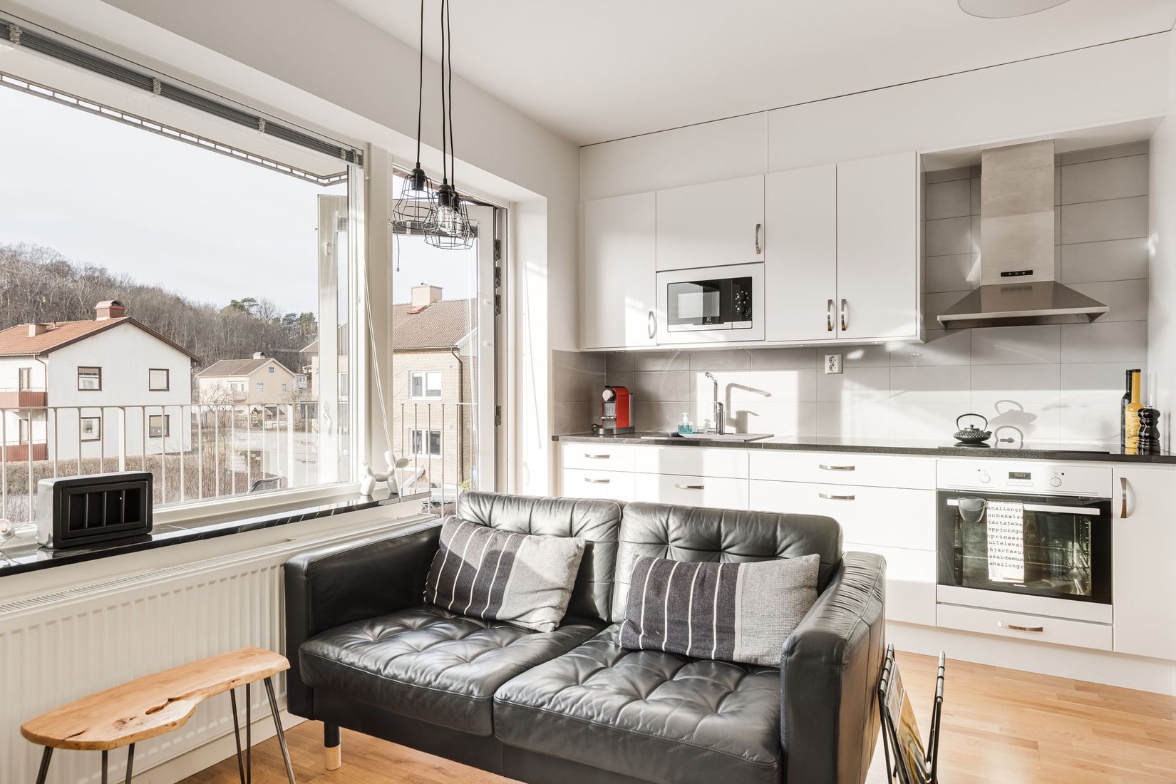 Bostaden erbjuder genomgående fina färg och materialval i kombination med en välplanerad planlösning som skapar en trivsam och funktionell boendemiljö. Här finns hall, badrum samt ett rymligt allrum med kök längs ena väggen. I allrummet finns gott om plats för både matbord, soffa och säng. Härifrån nås även balkongen som blir en naturlig förlängning av bostaden under årets varmare månader.