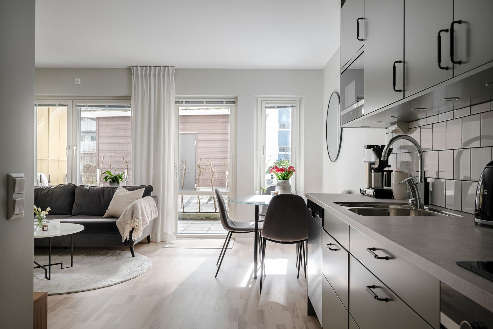 Nu kan vi presentera denna välplanerade och stora etta med uteplats! Här erbjuds en välplanerad planlösning med kvadratsmarta utrymmen och goda förvaringsmöjligheter genom flertalet garderober och en klädkammare. Vackert ljusinsläpp från stora fönster och gott om sociala öppna ytor! I övrigt erbjuder bostaden ett helkaklat modernt badrum med egen tvättutrustning och ett stilsäkert kök från Marbodal. Denna etta ger dig utrymmet att skapa det hem du önskar, planlösningen med kök i anslutning till vardagsrummet ger möjlighet till en utmärkt social yta. Perfekt för dig som vill ha ett boende med stadskänsla i ett lugnt område!