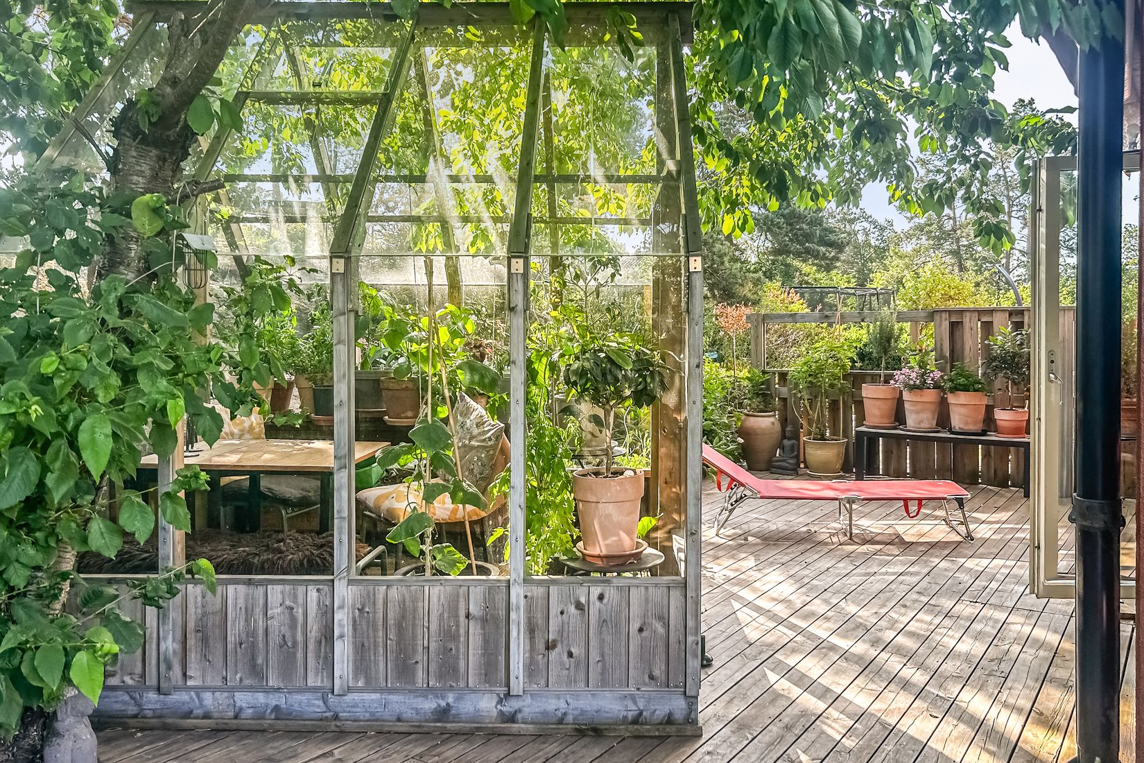 På tomten finns dessutom växthus och förråd som ger extra livskvalitet och praktiska möjligheter för både odling och förvaring. För den bekväma vardagen finns garage i länga samt en parkeringsplats utomhus. Detta är ett hem som verkligen passar barnfamiljen – med trygga omgivningar, naturen runt hörnet och gott om plats att växa. Dessutom finns en sandlåda/lekplats i nära anslutning till radhuset.