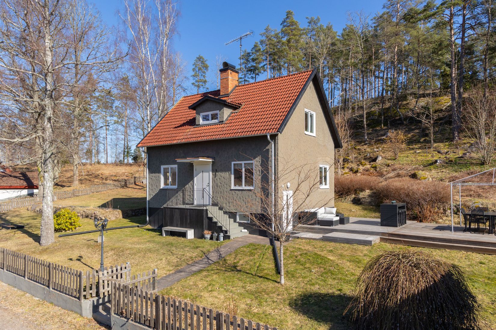 Utomhus väntar din egen oas. Det generösa trädäcket i perfekt sydvästläge är som gjort för grillkvällar och soliga eftermiddagar. Den välskötta trädgården med sina fruktträd, buskar och odlingslådor bjuder in till skaparglädje för den med gröna fingrar. Till fastigheten hör även en praktisk uthuslänga och garage.