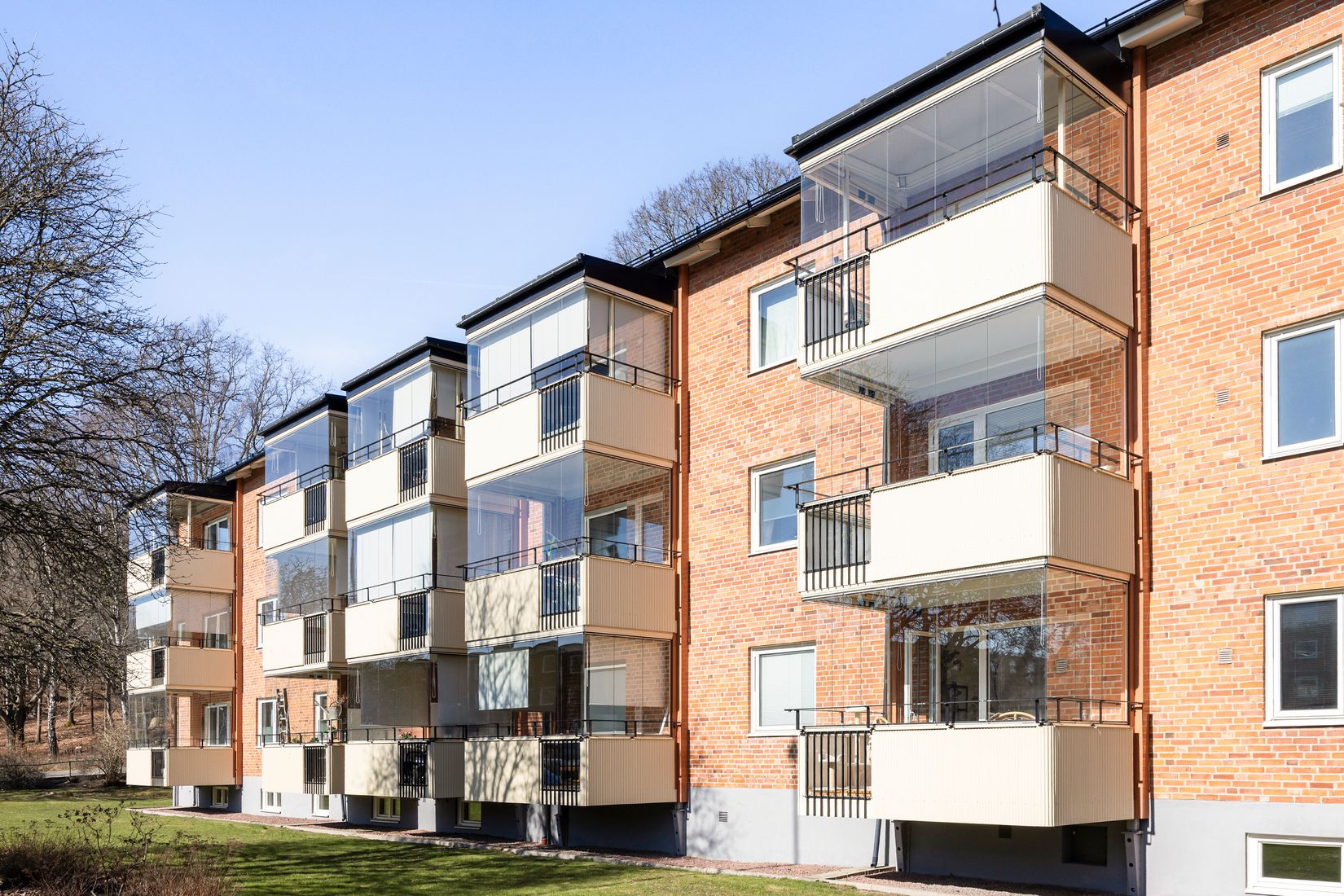 Längst in i bostaden öppnar sig det ljusa och inbjudande vardagsrummet upp sig som är hemmets naturliga samlingspunkt. Här flödar ljuset in och skapar en luftig känsla med gott om plats för både avkoppling och sociala stunder. Från vardagsrummet nås den stora inglasade balkongen, som blir en förlängning av rummet och erbjuder en plats att njuta av större delen av året från soliga morgnar till stilla kvällar. Här har golvet fått en extra touch med trall lagt i fiskbensmönster - en underbar detalj!