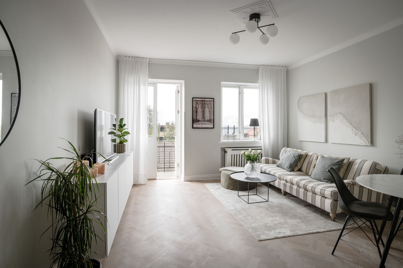Genom stora fönsterpartier strålar ett magiskt ljusinsläpp in över varje kvadratmeter. Bostaden håller en mycket hög standard och är utrustad med en rymlig hall, ett tidlöst renoverat kök , ett underbart ljust och luftigt vardagsrum med utgång till balkongen samt ett mysigt sovrum. Badrummet är helkaklat och försett med tvättmöjligheter och dusch.