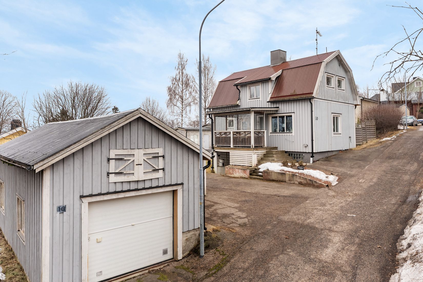 Bilen ställer du i det rymliga garaget med fjärrport och verkstadsdel, alternativt i carporten eller på uppfarten.