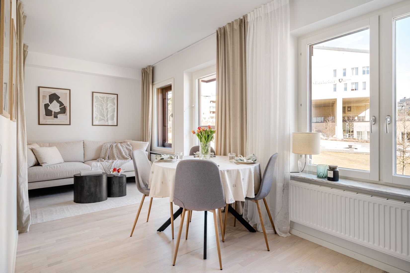 Lägenheten präglas av genomgående hög standard med fräscha materialval och en ljus, luftig atmosfär. Den franska balkongen bidrar med extra ljusinsläpp och en härlig kontakt med omgivningen.