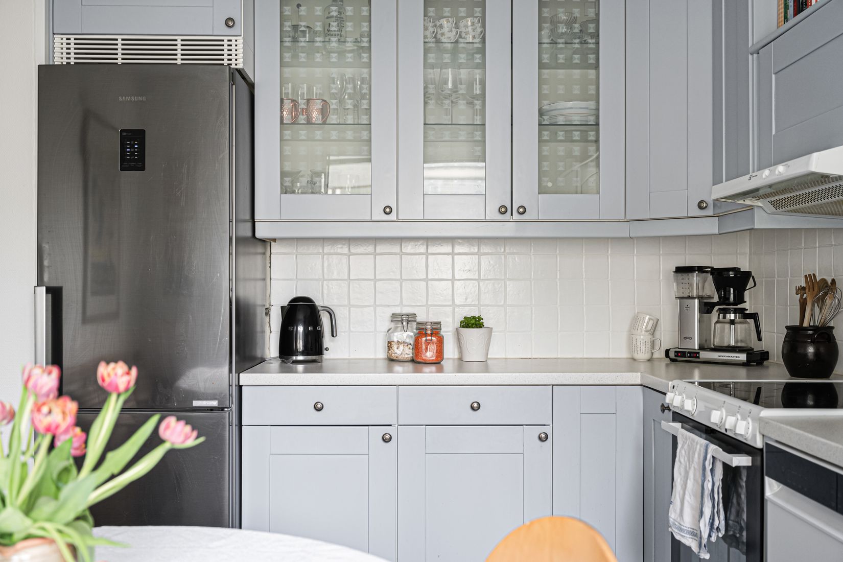 Lägenheten har en genomtänkt planlösning med generösa sällskapsytor och ett vardagsrum som bjuder in till både umgänge och avkoppling. Härifrån nås även den trevliga balkongen, perfekt för morgonkaffet eller en stund i solen. Köket är funktionellt och erbjuder goda arbetsytor samt plats för matbord. Sovrummet är rofyllt och präglas av ett vackert brädgolv som för tankarna till husets byggår, vilket skapar en varm och genuin känsla. De fina fönsterbänkarna i kalksten är ytterligare en charmig detalj som förstärker bostadens karaktär.