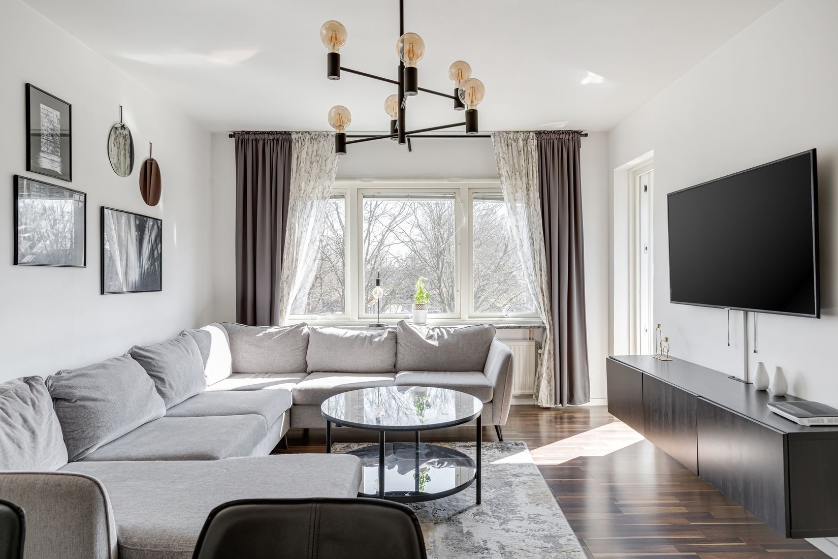 Det generösa vardagsrummet bjuder in till sociala tillställningar och rymmer enkelt både en större soffgrupp och matplats. Planlösningen är genomtänkt och skapar ett naturligt flöde mellan rummen. Bostaden har stilrena ytskikt som ger ett fräscht och modernt intryck, och både kök och badrum är smakfullt renoverade med fokus på funktion och stil. Här finns även en praktisk gäst-WC , perfekt för familjen!