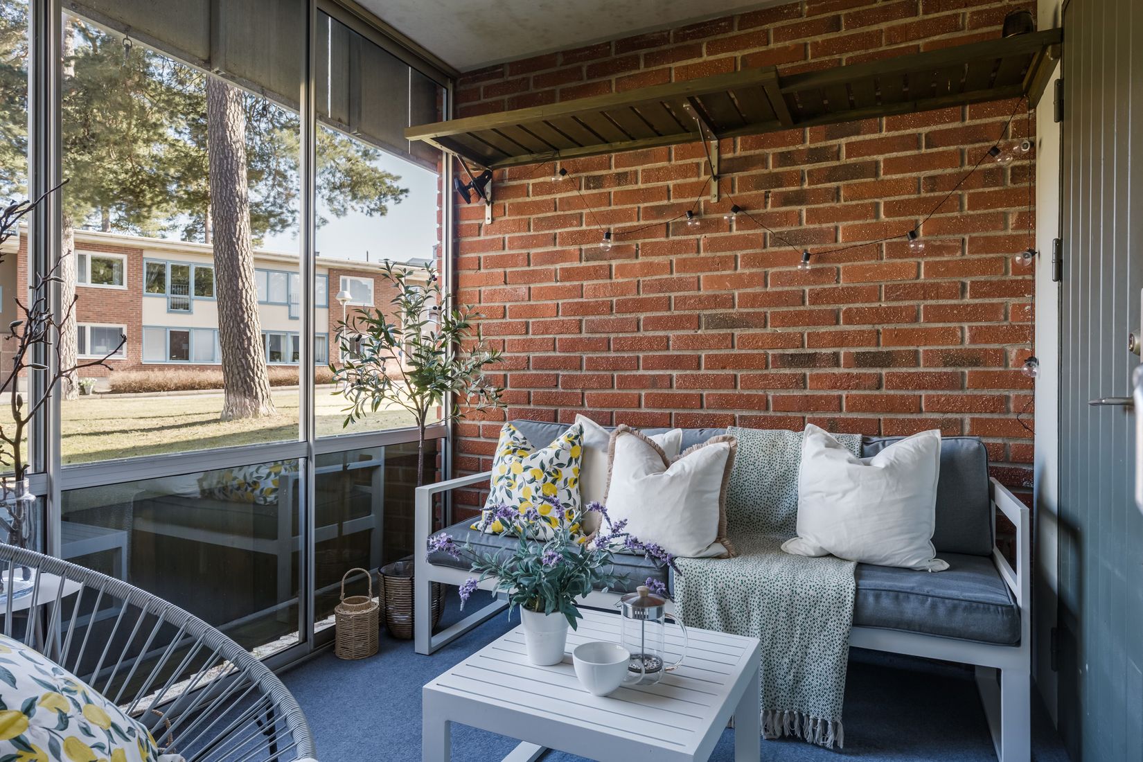 Bostaden erbjuder ett ljust och rymligt vardagsrum samt två bra sovrum, där det större har en praktisk klädkammare. Köket har utgång till den inglasade altanen som förlänger utesäsongen och skapar en naturlig plats för både vardag och umgänge.