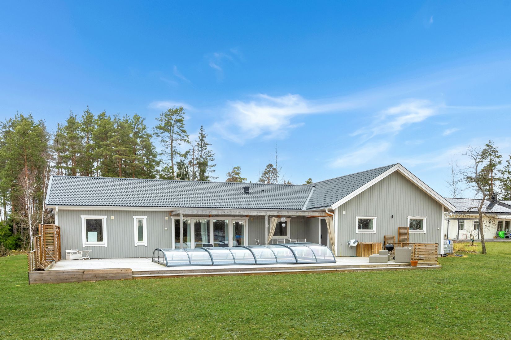 Garaget om hela 58 kvm rymmer två bilar och har dessutom en praktisk förrådsdel med utgång mot uteplatsen. Utanför finns även en generös carport samt en uppfart med plats för flera bilar. Trädgården är något alldeles extra. Under årets varmare månader förvandlas den till en privat oas med stor trall, flera sociala ytor och en härlig pool. Här njuter du av ett ostört läge med vidsträckt utsikt över öppna åkrar - en plats där lugnet verkligen infinner sig.