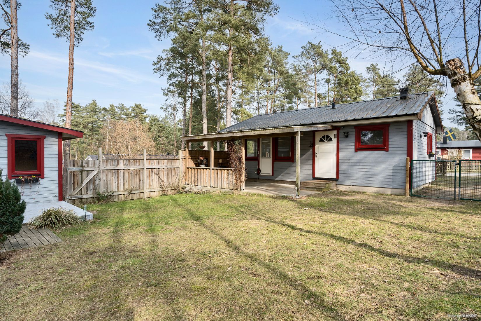 Den stora uteplatsen blir en naturlig samlingspunkt för både familj och vänner, med gott om utrymme för grillkvällar och soliga dagar. Här finns också ett praktiskt uteförråd som rymmer allt från trädgårdsredskap till sportutrustning. För den som ofta har besök finns det dessutom en mysig gäststuga, perfekt för att ge långväga gäster en bekväm vistelse.