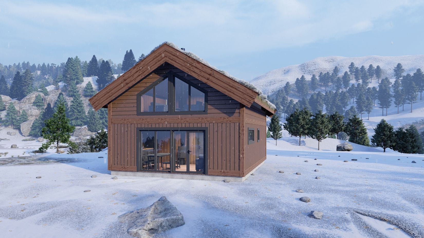 Stugan omfattar cirka 70 välplanerade kvadratmeter där varje yta är noggrant genomtänkt. Det luftiga allrummet bjuder på stora panoramafönster med utgång till naturen eller en framtida altan, samt en stämningsfull braskamin som skapar äkta fjällkänsla. Den öppna planlösningen mellan kök och matplats ger en social och inbjudande atmosfär. På entréplanet finns två trivsamma sovrum, medan loftet rymmer ytterligare två sovrum samt ett extra allrum – perfekt för både familj och gäster. Här finns även en praktisk hall med ett badrum med dusch samt en separat toalett med teknik- och tvättdel. Utvändigt finns ett smidigt skidförråd.