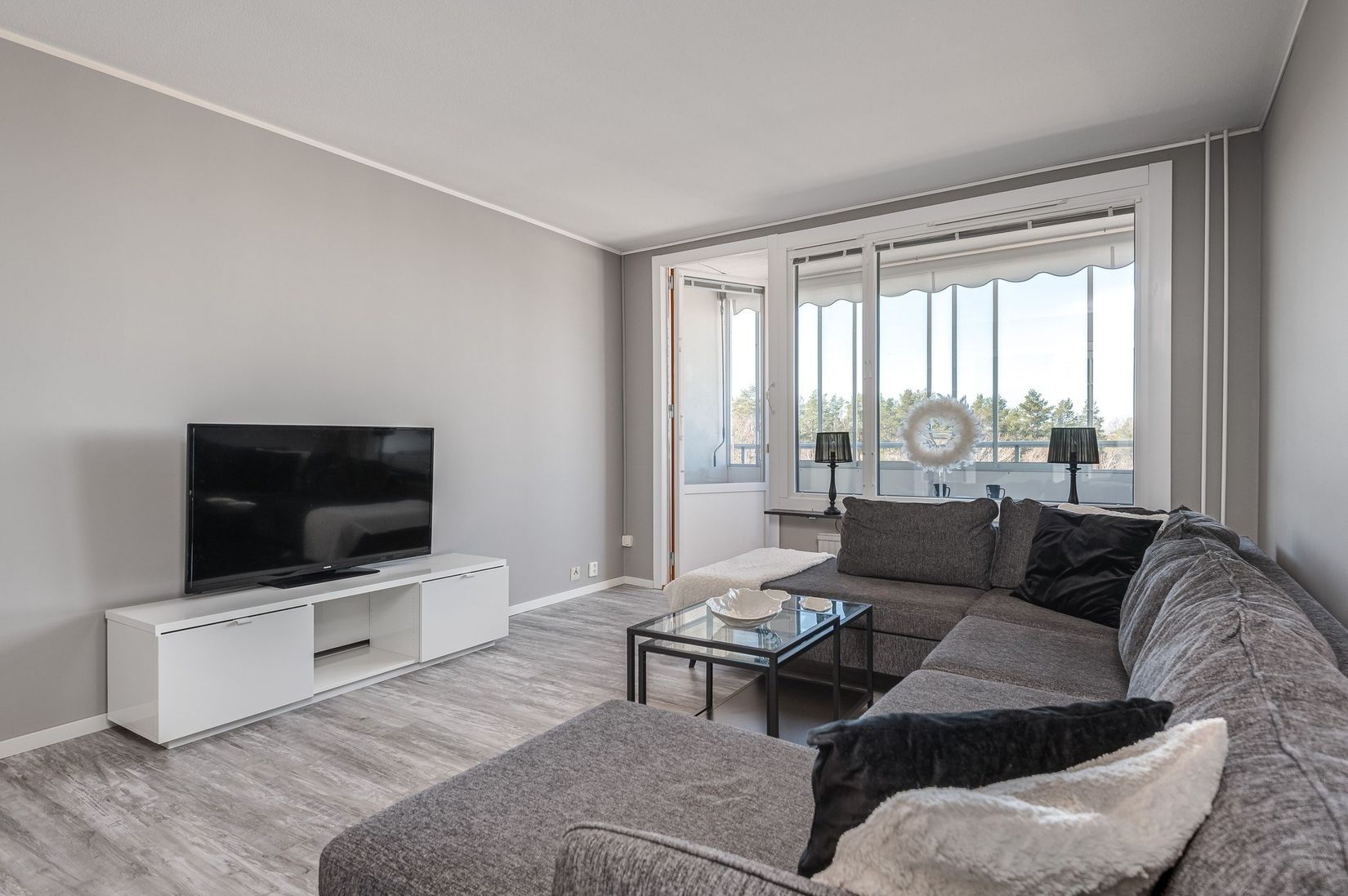 När du kliver in i lägenheten möts du av en välkomnande hall med laminatgolv, målade väggar och praktiska garderober som erbjuder goda förvaringsmöjligheter. Vidare in öppnar bostaden upp sig mot det rymliga vardagsrummet som erbjuder gott om plats för både soffgrupp och matplats. Här finns även en naturlig avskiljning för sovdel vilket skapar en smart och funktionell 1,5:a. Från vardagsrummet nås även balkongen – en trevlig plats att koppla av och njuta av årets varmare dagar.