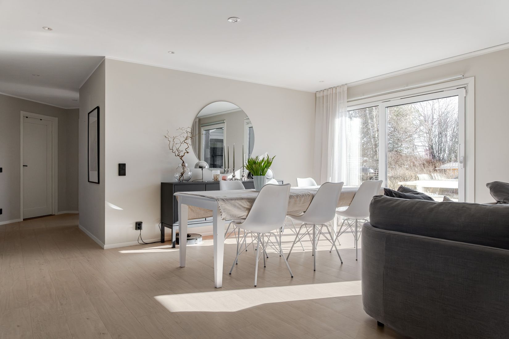 Bostaden erbjuder mycket välplanerade 120 kvm fördelat på fem rum och kök, varav tre sovrum. Du välkomnas av en hall med klinkergolv/golvvärme med plats för avhängning och i anslutning finns en praktisk gästtoalett och leder dig vidare till extra allrum, tvättstuga och garage. Köket är stilrent med stor köksö mot matplatsen och allrummet. Härifrån nås även baksidans trädgård i bästa söderläge. Vidare finns tre sovrum i varierande storlek samt ett stilrent badrum med kakel och klinker, handfat med kommod, wc, duschhörna och badkar!