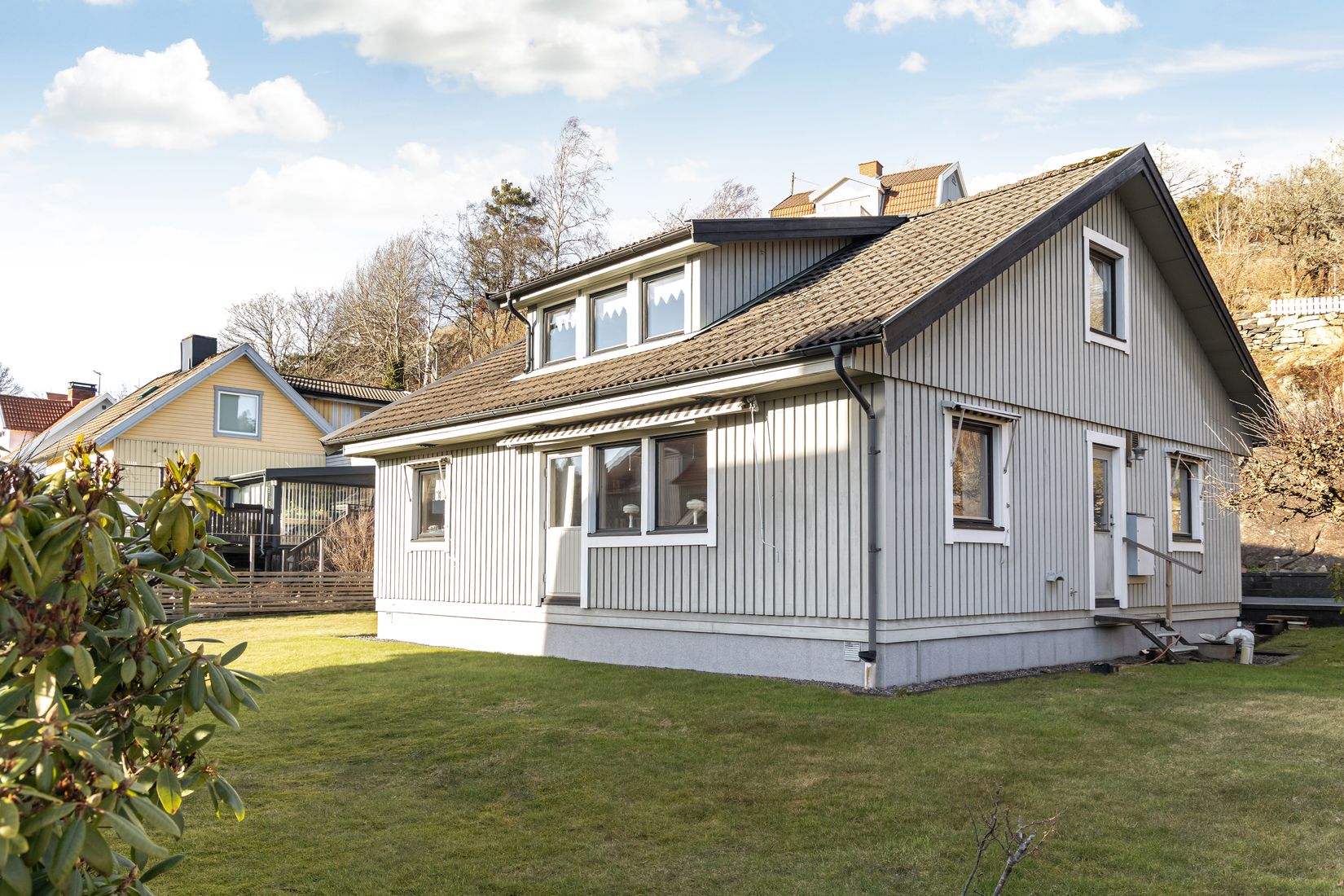 Här bor du i ett lugnt och trivsamt område med en plan och lättskött trädgård – perfekt för lek, odling eller avkopplande stunder i solen.
