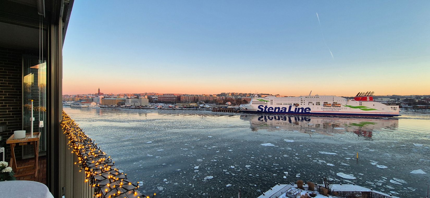 Välkommen till ett boende med lyxkant vid vattnet och denna pärla långt ute på Eriksbergsdockans pir med underbar utsikt över älven.