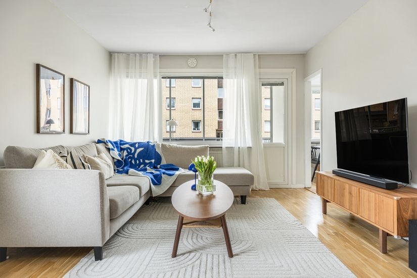 Lägenheten består av en välkomnande entréhall, funktionellt kök med vita köksskåp och mindre matplats, större vardagsrum med plats för både rejäl soffgrupp och matsalsmöbel, nyrenoverat badrum från 2024 samt två sovrum i bra storlek. Här finns även en inglasad balkong i perfekt västerläge som verkligen höjer livskvaliteten för dig som boende.