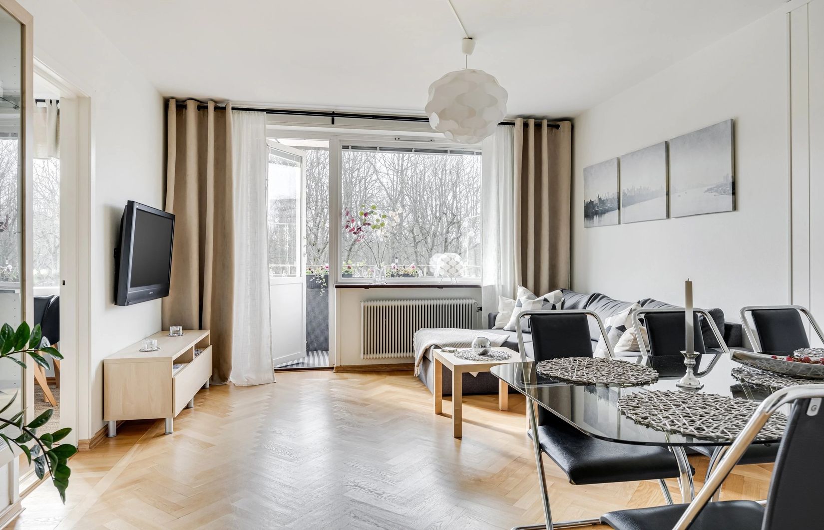 Bostaden präglas av ett härligt ljus tack vare fönster i söderläge med fri utsikt över Sofiaparkens grönska. Läget är insynsskyddat och skapar en lugn och privat känsla. Från vardagsrummet nås balkongen som vetter mot den lummiga gården, en perfekt plats att njuta av solen större delen av dagen.