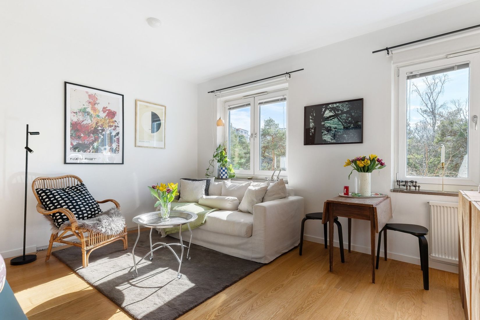 Varmt välkommen till Arvid Mörnes Väg 46 - en yteffektiv lägenhet i lummiga Blackeberg. Här är det bara att flytta in! Lägenheten har ett väl omhändertaget ekparkettgolv i 1-stavsmönster, ljusa väggar, och stora fönsterpartier som vetter mot grönskan och släpper in härligt ljus i lägenheten. En generös takhöjd gör att lägenheten känns luftig och trevlig, och dessutom ger det en möjlighet att sätta in en loftsäng om man så önskar! Köket är effektivt byggt med smart förvaring, en rejäl bänkskiva i trä, spishäll, kombinerad kyl/frys, och en ugn. Badrummet är helkaklat och alternativ finns för att sätta in en mindre tvättmaskin, prata med mäklaren för att få veta mer! Till lägenheten hör även ett förråd, och extra förråd finns att hyra av föreningen vid tillgänglighet.