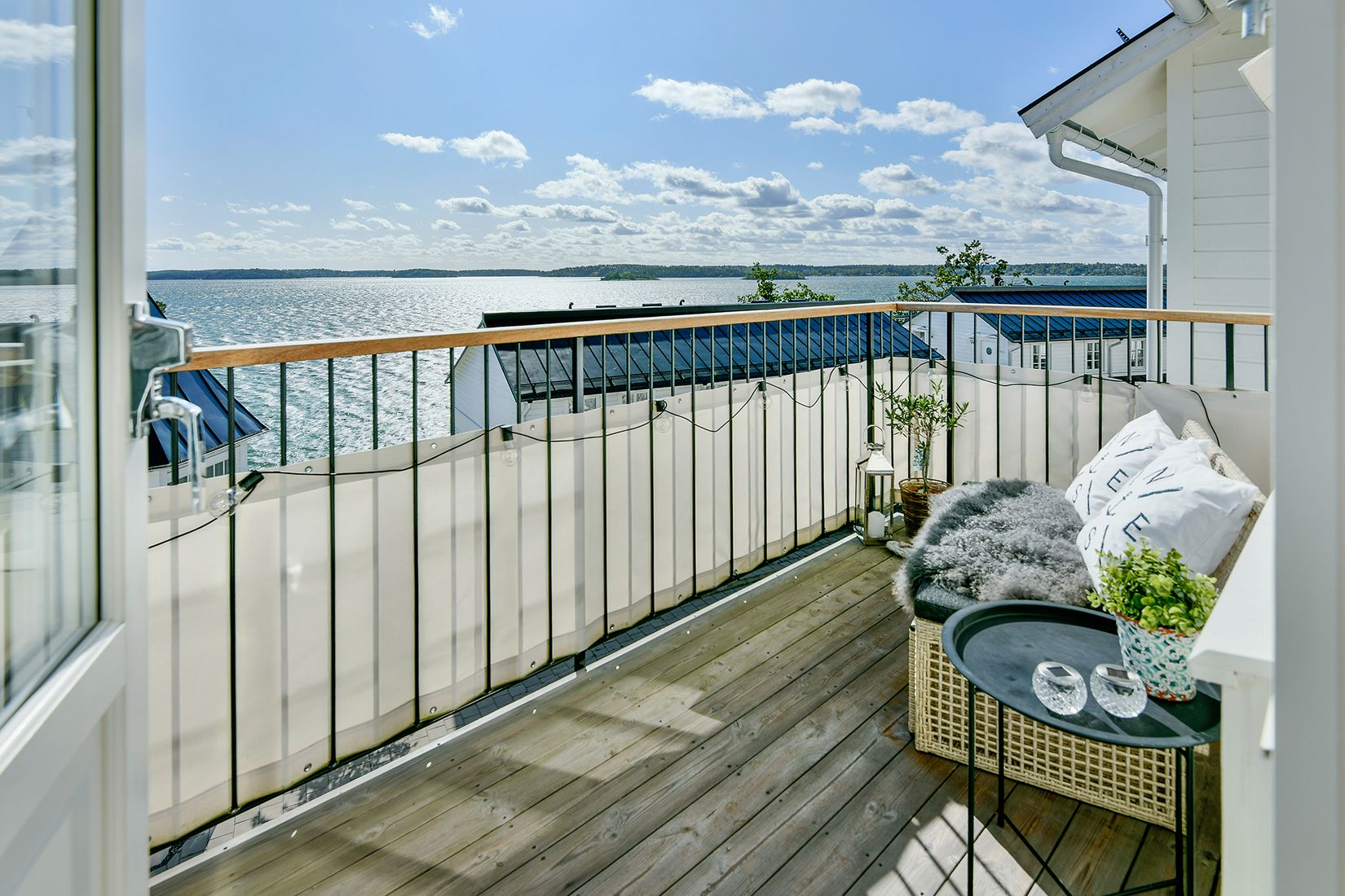 Balkongen i bästa söderläge erbjuder sol från morgon till kväll och blir snabbt en favoritplats för både avkoppling och umgänge. Under sommaren är känslan svårslagen – det är som att bo på en egen resort, där varje dag känns som ledighet.