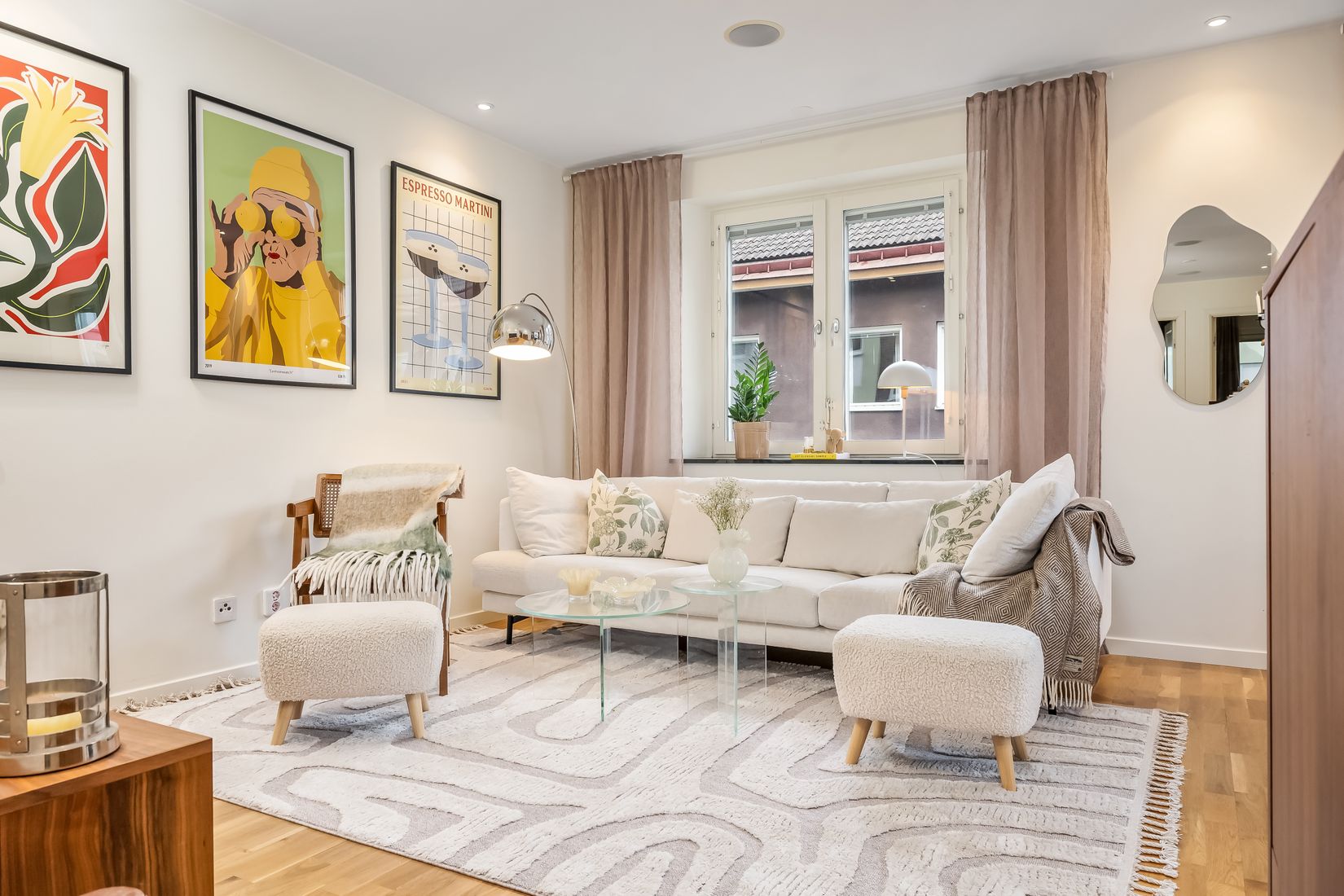 Välkommen till denna ljusa och trivsamma trea med attraktivt hörnläge näst högst upp i huset med hiss. Här möts du av ett fint ljusinsläpp och en genomtänkt planlösning där kök och vardagsrum binds samman i en halvöppen och social yta. Köket är fullt utrustat och erbjuder plats för matbord medan vardagsrummet ger utrymme för både vardag och umgänge. Lägenheten har dessutom en unik känsla tack vare spotlights i taket och inbyggda högtalare som bidrar till en modern och exklusiv atmosfär.
