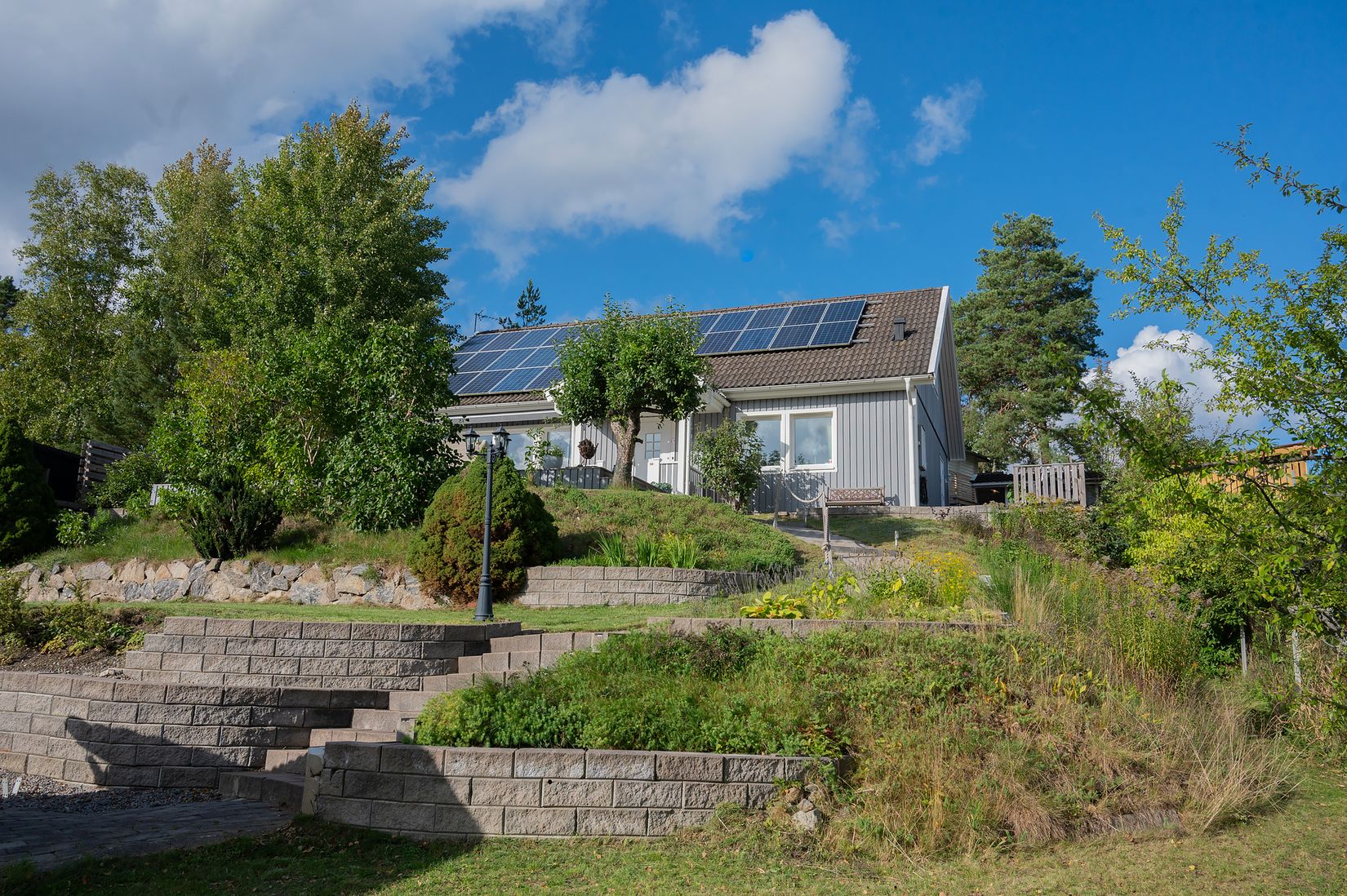 Huset om generösa 160 kvm erbjuder en flexibel och välplanerad planlösning med fyra sovrum och möjlighet att skapa ett femte för den som behöver extra utrymme. Här finns två rymliga allrum som bjuder in till både sociala tillställningar och avkopplande familjekvällar. Köket är trivsamt och funktionellt, och de två badrummen underlättar vardagen för den större familjen.