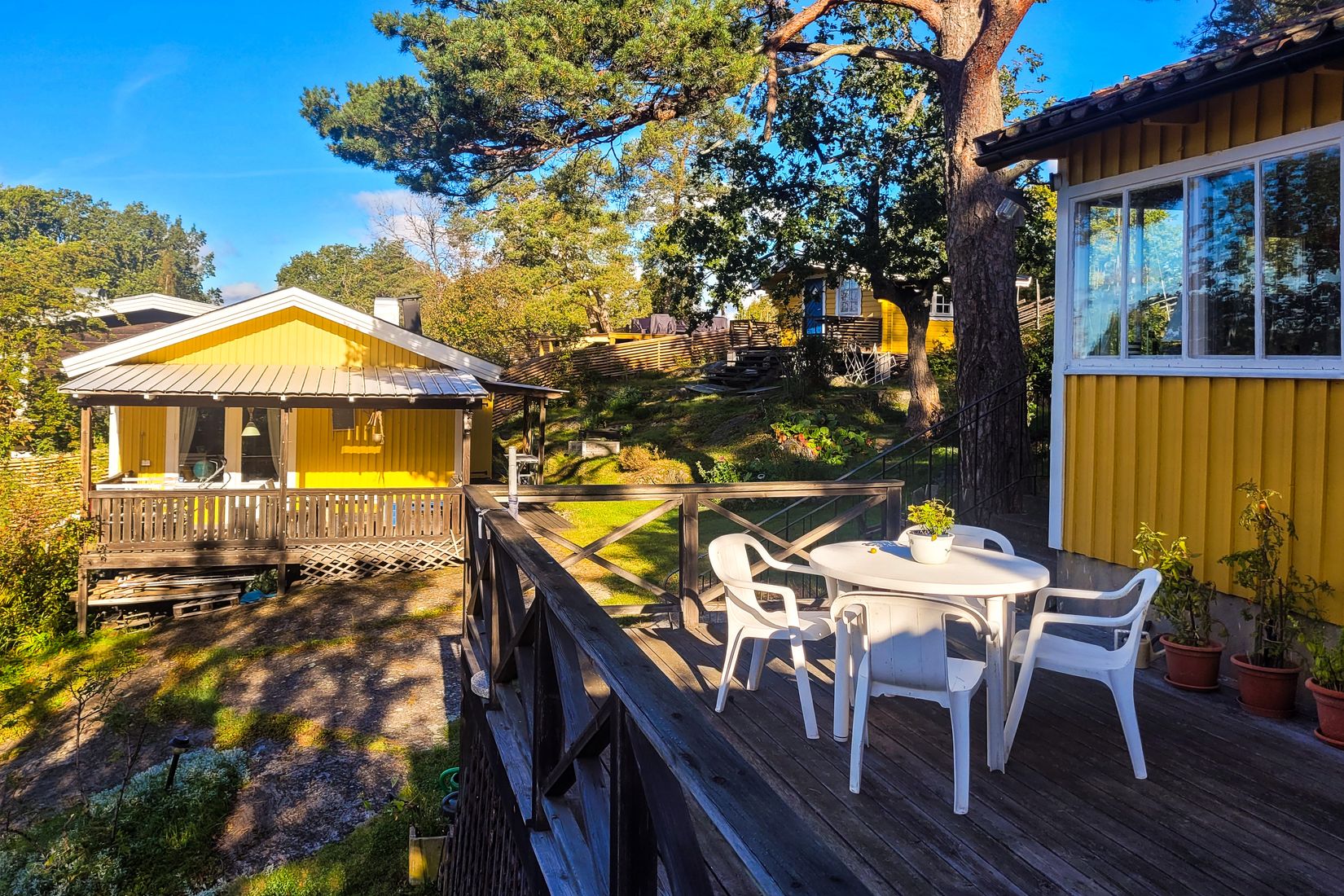 Läget är mycket attraktivt med endast cirka 75 meter till badbrygga och busshållplats. Bussförbindelser tar dig till Slussen på ungefär 40 minuter vilket gör det enkelt att kombinera skärgårdsliv med stadens utbud. I närområdet finns flera badstränder, både populära och mer avskilda, samt strandfik, simskola, tennisbanor, golf, fiske, restauranger och livsmedelsbutik. Här finns även fina möjligheter till cykling, vandring och ett rikt friluftsliv året runt.