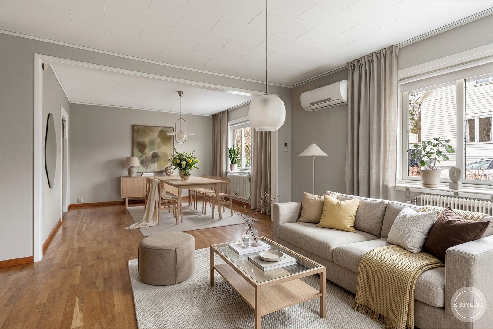 Huset är i 1 1/2 plan och erbjuder en välplanerad boyta om 93 kvm med fyra rum, varav två sovrum. Här finns ett stort och inbjudande vardagsrum med gott om plats för både umgänge och avkoppling. Det ena sovrummet har dessutom en egen eldstad som skapar en mysig och ombonad känsla.