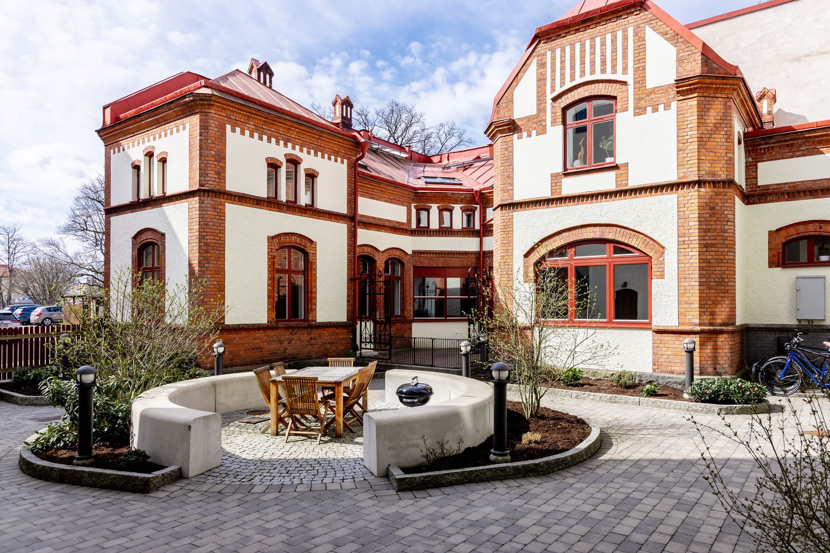 Välkommen till detta gårdshus i en av Växjös mest storslagna sekelskiftesfastigheter. Här har det traditionella hantverket bevarats och fokus lagts på unika detaljer såsom takfönster, synliga takbjälkar, kakelugn och storslagen rymd. Boendets bostadsyta är beläget på andra våningen med karaktär och enastående charm. Entrén ligger i markplan och direkt utanför har man sin egna uteplats där man kan skapa en rofylld yta. En trappa upp möts man av vardagsrummet med sina vackra bjälkar, enorma rymd och fönsterdetaljer. Här finner man också en rymlig klädkammare och en trappstege upp till loftet. Det renoverade badrummet är helkaklat i stilrena färger och erbjuder både tvättmaskin och torktumlare. Vidare in i detta underbara boende når man lägenhetens mittpunkt med köket och allrumsdelen som kröns med en fungerande kakelugn. Här kan man duka upp med det stora matsalsbordet och de stora takfönstren skänker ljus över rummet. Köket är välutrustat och i stilrent utförande från Ballingslöv. I den öppna planlösningen mot allrumsdelen står kakelugnen som inte bara är en vacker detalj i inredningen utan ger värme och avslappning från vardagens stress under svalare årstider. In mot byggnadens andra gaveldel ligger det stora sovrummet lagom avskilt. Med dess fina välvda fönster och takljus kan man skapa sin egna fristad och möblera upp både med dubbelsäng och vilsamma sittplatser.