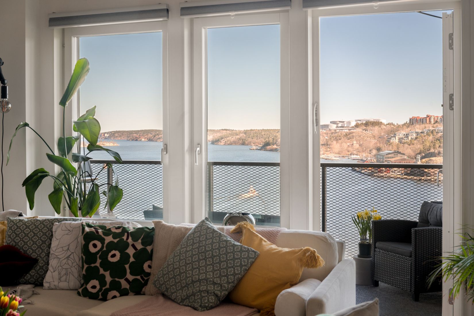 Välkommen hem till denna exklusiva bostad anno 2018 i högt belägna Stockholms Lighthouse. Lägenheten ligger vänd mot havet och har fantastisk utsikt och ett fint ljusinsläpp med stora fönster och en magnifik balkong om ca 6 kvm. Det unika läget ger dig direktkontakt med vattnet och inger en känsla av att svävar över takåsar och trädtoppar. Här passerar de gigantiska kryssningsfartygen på sin väg till och från Stockholm och på kajen en kort bit bort från huset ligger båthållplatsen där pendelbåtarna tar dig snabbt in till stan.