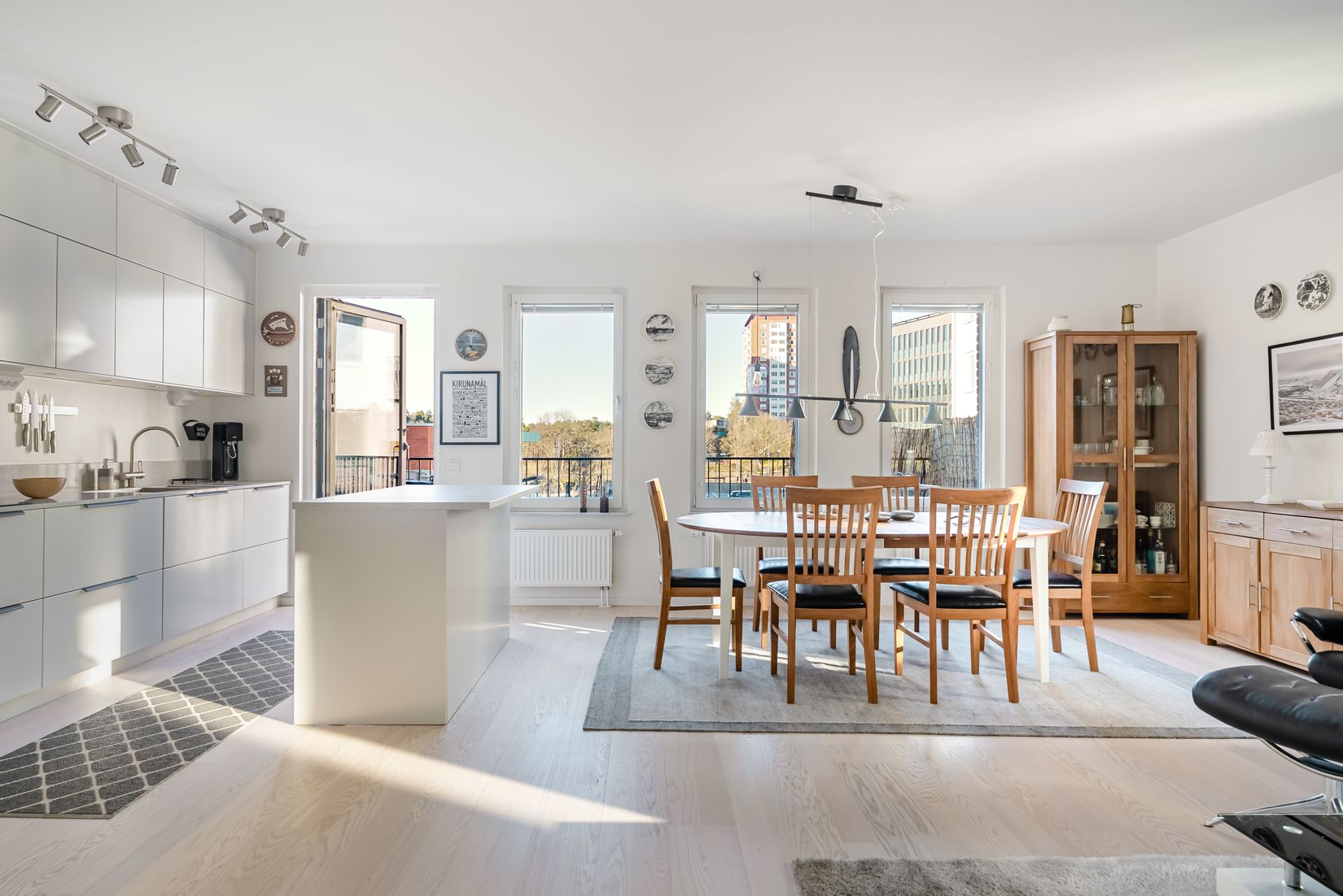 Bostaden går att göra till en fyra, se alternativ planlösning. Lägenheten öppnar upp med en rymlig hall med gott om plats för avhängning av ytterkläder. Här finns två trivsamma sovrum och ett vardagsrum med flertalet fönster och utgång till en stor balkong om 9 kvm med ett högt och fritt läge. Den öppna planlösningen mellan vardagsrummet, matplatsen och köket skapar en luftig och social miljö. Badrummet är utrustat med golvvärme, duschhörna, wc, handfat, en generös avlastningsyta, tvättmaskin och torktumlare. Allt är i mycket gott skick.