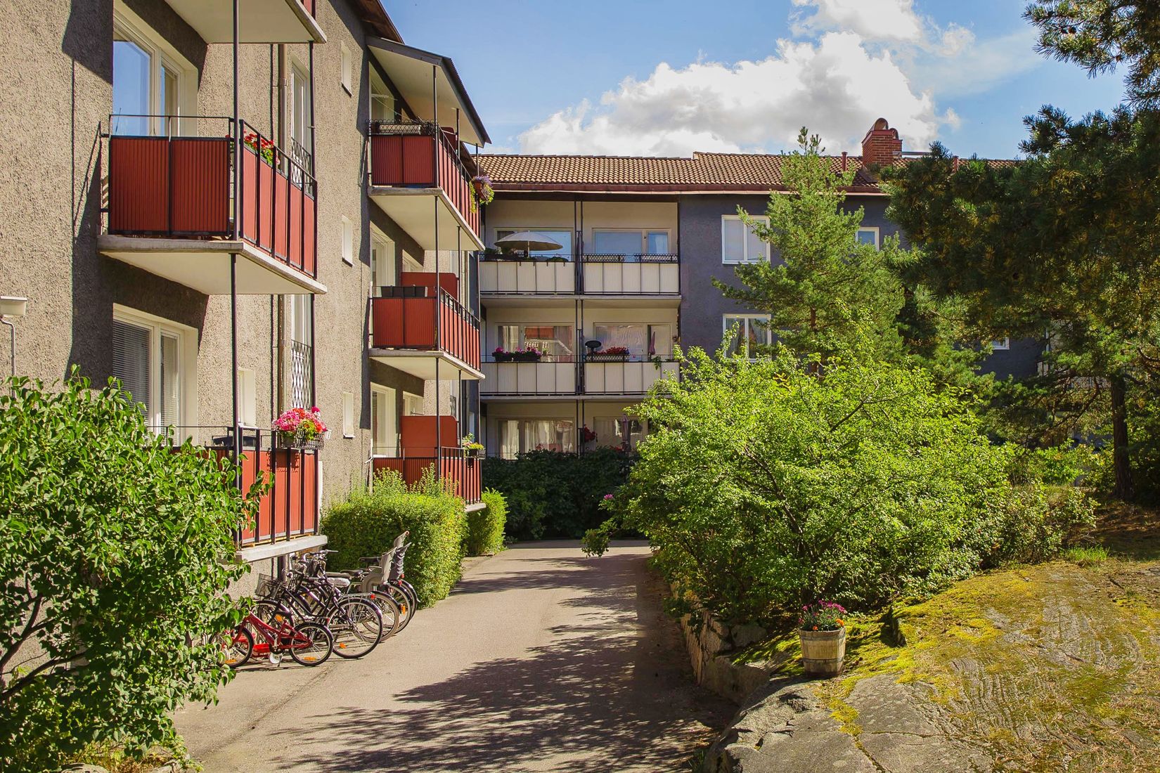 Blackeberg byggdes till största delen mellan 1951–1952 och är ett fantastiskt exempel på 1950-talets folkhemsarkitektur. Här dominerar de klassiska lamellhusen, uppförda i tre våningar med charmiga innergårdar, generösa fönster, genomgående planlösningar, mycket förvaring, kök i norr och soliga balkonger i söder. Området är kuperat och ligger på en höjd – vilket gör att många bostäder bjuder på vidsträckt utsikt över Västerort och ända in mot Stockholms stad. Känslan av rymd och himmel är påtaglig.