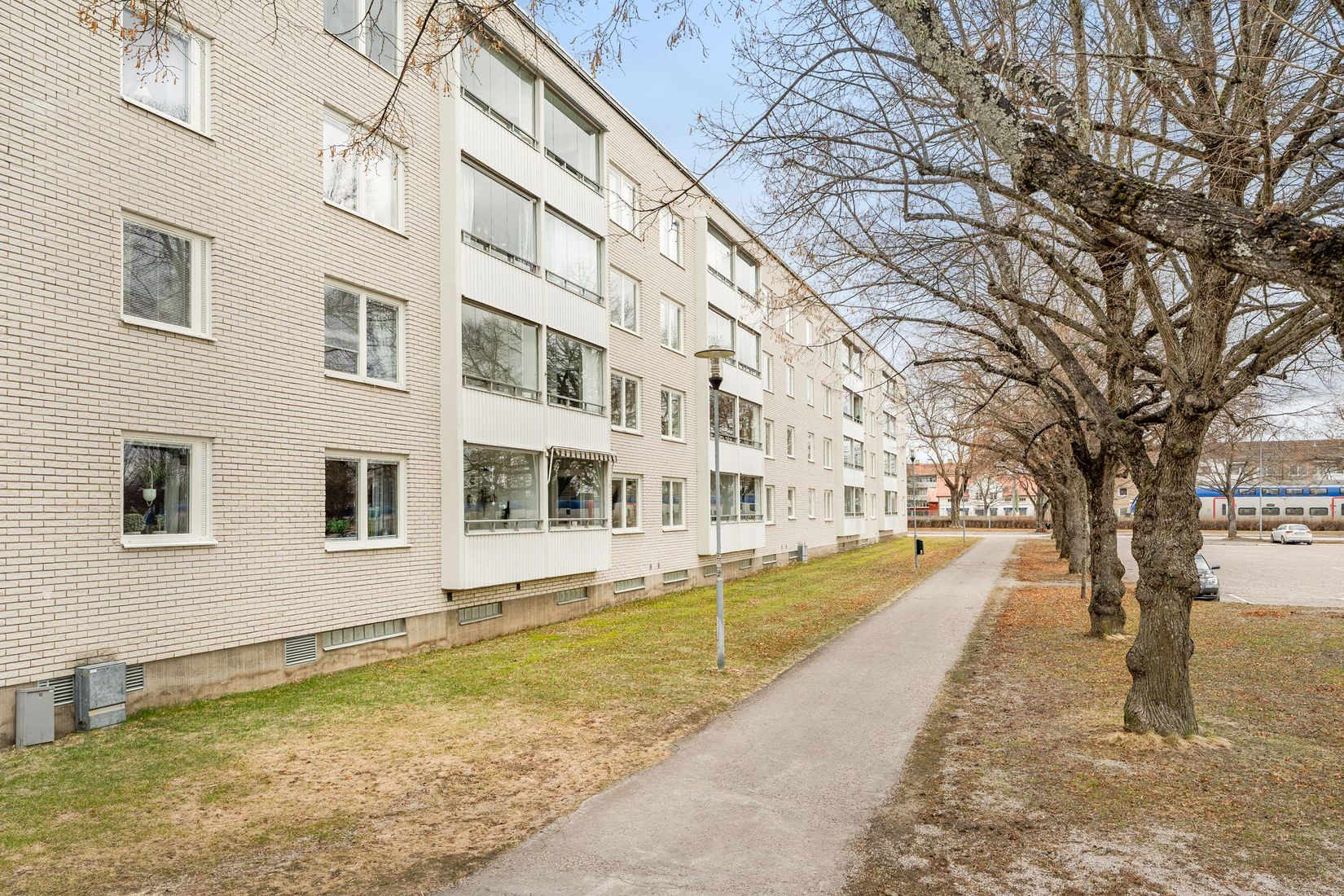 Den rymliga inglasade balkongen ger möjlighet till avkoppling och njutning. Lägenheten har ett utmärkt centralt läge, med närhet till kommunikationer som underlättar pendlingen.