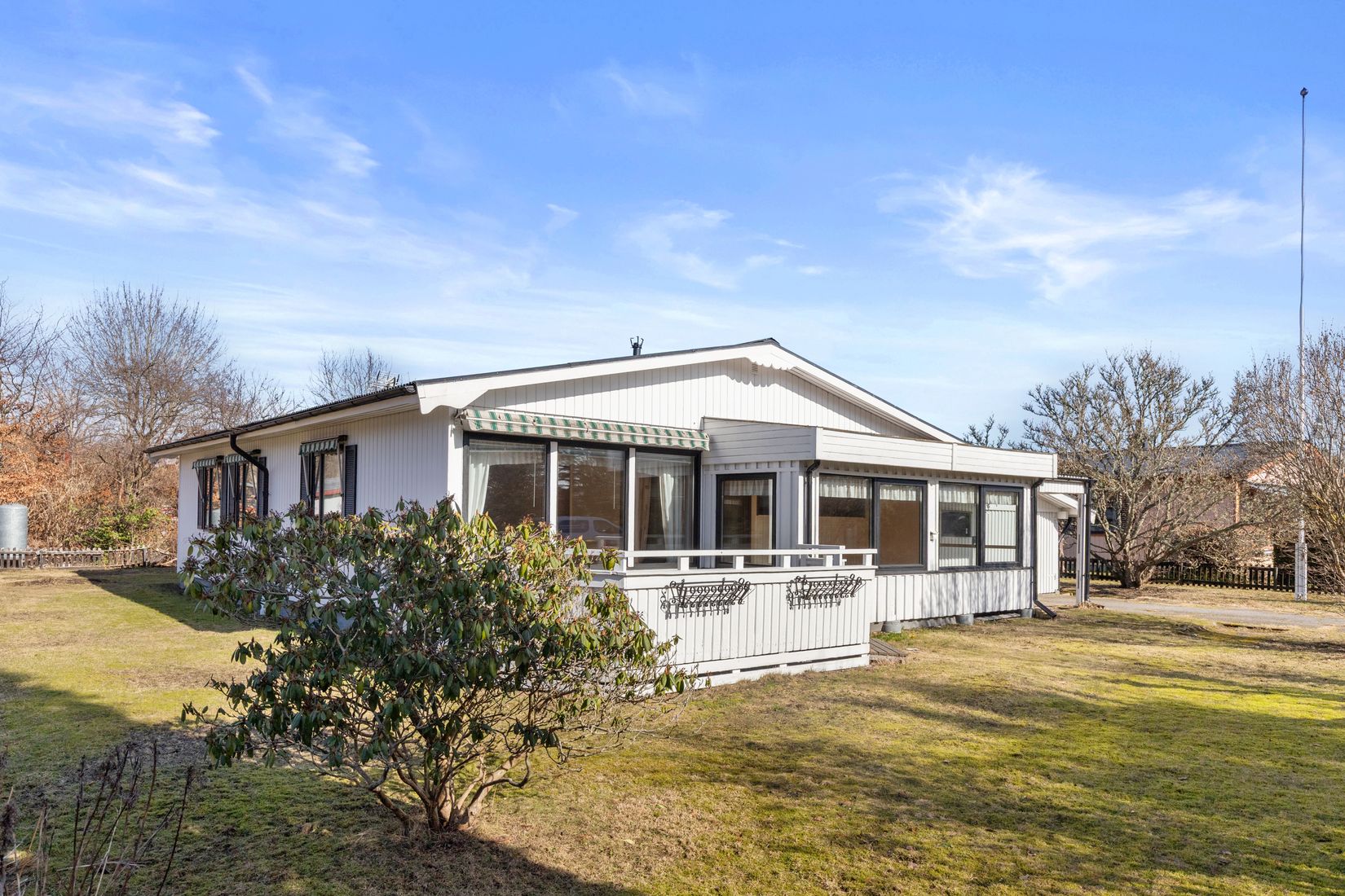 Här erbjuds ett bekvämt boende med lättskött tomt, generösa sällskapsytor och ett härligt inglasat uterum som förlänger utesäsongen.