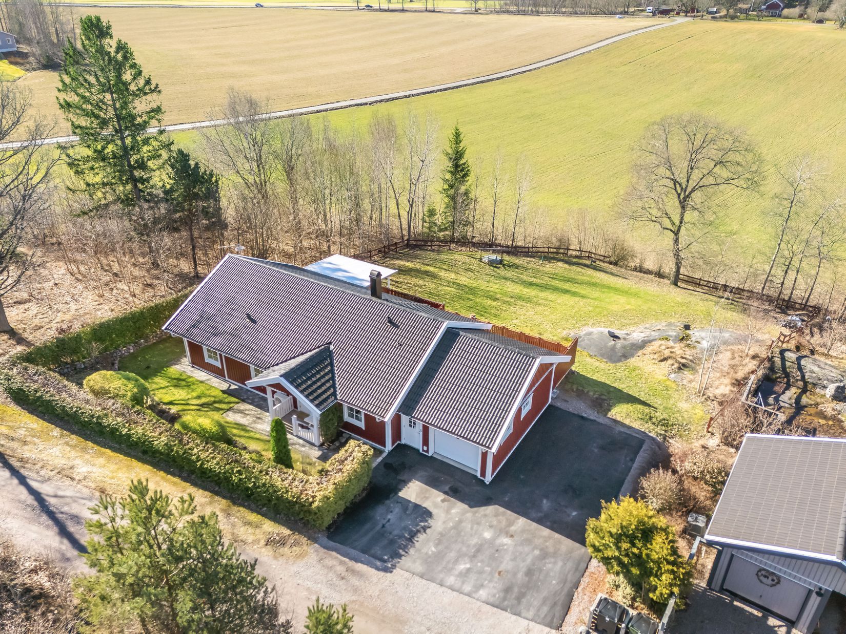 Huset om 109 kvm är välplanerat och rymmer kök, vardagsrum och tre sovrum, vilket passar både familjeliv och stillsamma stunder. Här finns även en praktisk tvättstuga och två klädkammare som gör det enkelt att hålla ordning i vardagen. Från huset tar du dig direkt till garaget, en detalj som snabbt blir en uppskattad del av livet här oavsett årstid.