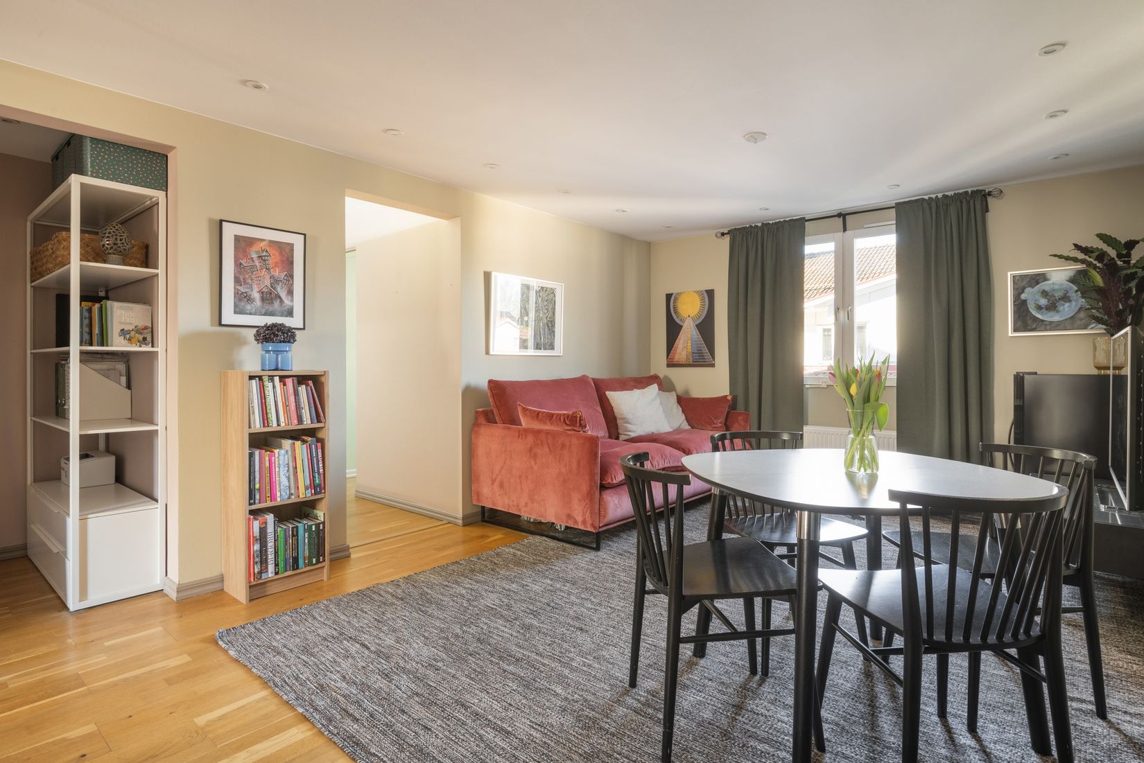 Välkommen till en ljus och inbjudande 3 rok med en underbar atmosfär, med badrocksavstånd (100 meter) till Mälarens strand. Precis intill ligger Örnbergets badklippor med sina spektakulära solnedgångar. Bostaden är smart planerad med sociala ytor och stora fönster som ger ett fint naturligt ljus. Den är omsorgsfullt renoverad och yteffektiv med en planlösning som passar såväl singelhushåll, barnfamiljer och par. Vardagsrum är rymligt och lättmöblerat i en öppen och trivsam disposition. Köket är stilrent renoverat och fullt utrustat, med en smart planlösning som maximerar ytan och skapar en trivsam plats för matlagning. Sovrummet är generöst tilltaget med goda förvaringsmöjligheter. Badrummet är smakfullt inrett och utrustat med tvättmaskin samt plats för ytterligare utrustning. Välkomnande hall med bra förvaring som smidigt binder samman bostadens alla rum.