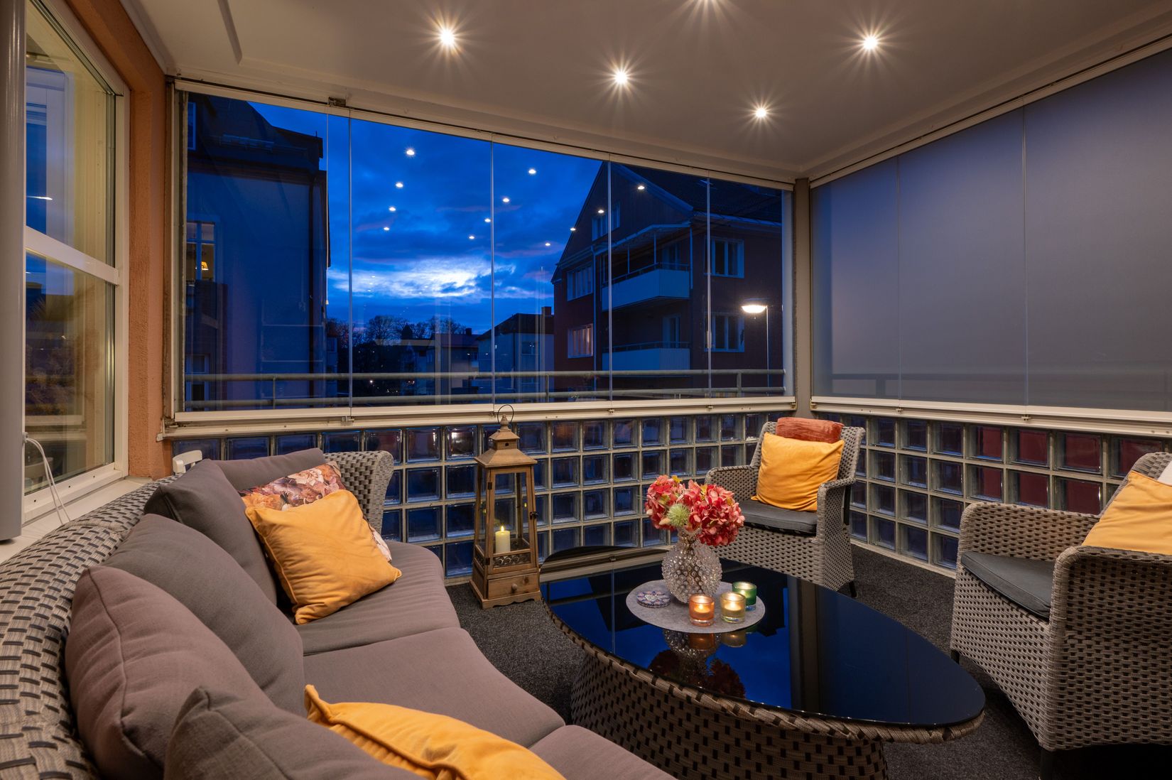 En inglasad balkong med cityläge och kvällssol är för många den ultimata drömmen i en urban miljö - här får du ett extra rum som förlänger utomhussäsongen, samtidigt som det skapar en tyst och skyddad oas mitt i stadspulsen.