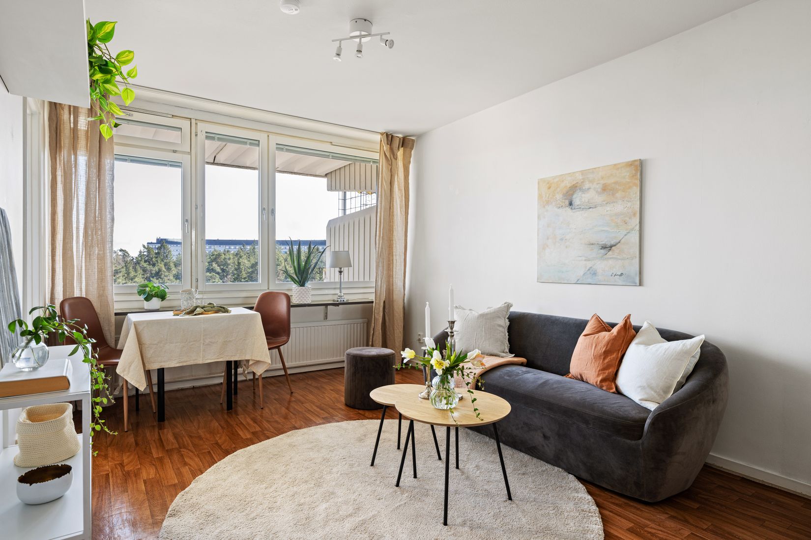 Finfin 1:a med sovalkov i populära Grindtorp - perfekt för dig som söker ett första boende. Lägenheten har ett stilrent kök med ljusa skåpluckor, mörkgrått kakel och matchande golv. I vardagsrummet finns mysig sovalkov men också plats för både soffa och matbord. Badrummet med dusch har kaklade väggar och klinkergolv med värme som renoverades i samband med stambyte 2012. Nya fönster är insatta av föreningen i hela lägenheten. Till lägenheten hör också en klädkammare samt ett vindsförråd.